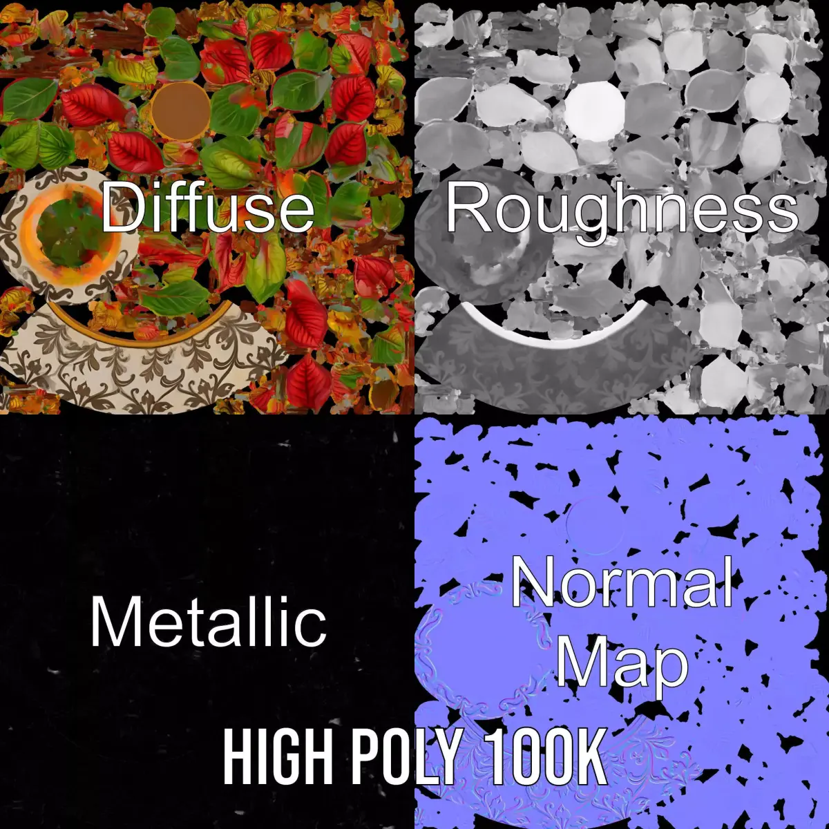 This vibrant decorative plant model features lush, colorful leaves and an ornate pot, perfect for adding a touch of nature to any scene. Ideal for interior design visualizations, architectural projects, or as a detailed prop in virtual environments. Each model has 3 levels of detail: low-poly (1000 triangles for mobile), middle-poly (10,000 triangles for environment), and high-poly (100,000 triangles), which allows for the use of this model in production rendering (such as 3ds Max, Maya, Cinema4D, Blender, Vray/Corona/Cycles and all others), game engines (Unity and Unreal compatible), and interactive presentations, providing a choice of detail based on the LOD System principle.The model's textures are PBR, Diffuse, NormalMap, and reflection/roughness/metallic, which are suitable for any modern rendering engine. All models accurately unwrapped and have no overlapping UV.All textures are 4096*4096 in size.If you like this model, please leave a comment and like!