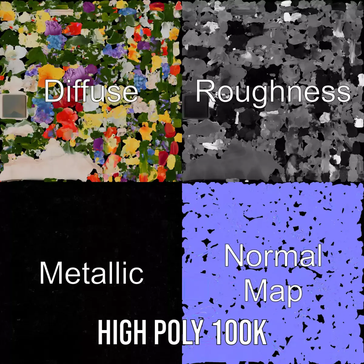 This vibrant floral bouquet model pack showcases an array of beautifully detailed flowers, perfect for enhancing any virtual garden, interior design project, or visual presentation. Each model has 3 levels of detail: low-poly (1000 triangles for mobile), middle-poly (10,000 triangles for environment), and high-poly (100,000 triangles), which allows for the use of this model in production rendering (such as 3ds Max, Maya, Cinema4D, Blender, Vray/Corona/Cycles and all others), game engines (Unity and Unreal compatible), and interactive presentations, providing a choice of detail based on the LOD System principle. The models stand out with their PBR, Diffuse, NormalMap, and reflection/roughness/metallic textures, suitable for any modern rendering engine. All models are accurately unwrapped and have no overlapping UVs. Textures are 4096*4096 in size. Perfect for virtual reality experiences, architectural visualization, or garden simulation projects. If you liked the model, please like and leave a comment!