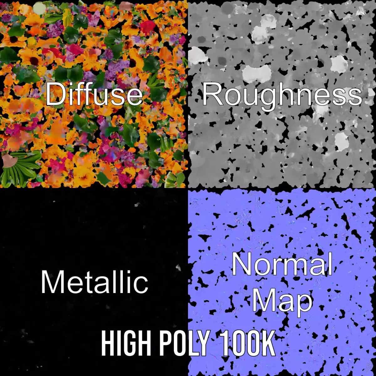 This vibrant flower bouquet model pack captures the beauty of a mixed floral arrangement, perfect for realistic interior design scenes, wedding simulations, and virtual garden showcases. Each model has 3 levels of detail: low-poly (1000 triangles for mobile), middle-poly (10,000 triangles for environment), and high-poly (100,000 triangles), which allows for the use of this model in production rendering (such as 3ds Max, Maya, Cinema4D, Blender, Vray/Corona/Cycles and all others), game engines (Unity and Unreal compatible), and interactive presentations, providing a choice of detail based on the LOD system principle. The model's textures are PBR, Diffuse, NormalMap, reflection/roughness/metallic, and all textures are 4096*4096 in size, suitable for any modern rendering engine. All models are accurately unwrapped with no overlapping UVs. Please like and leave a comment for the model if you enjoyed it.