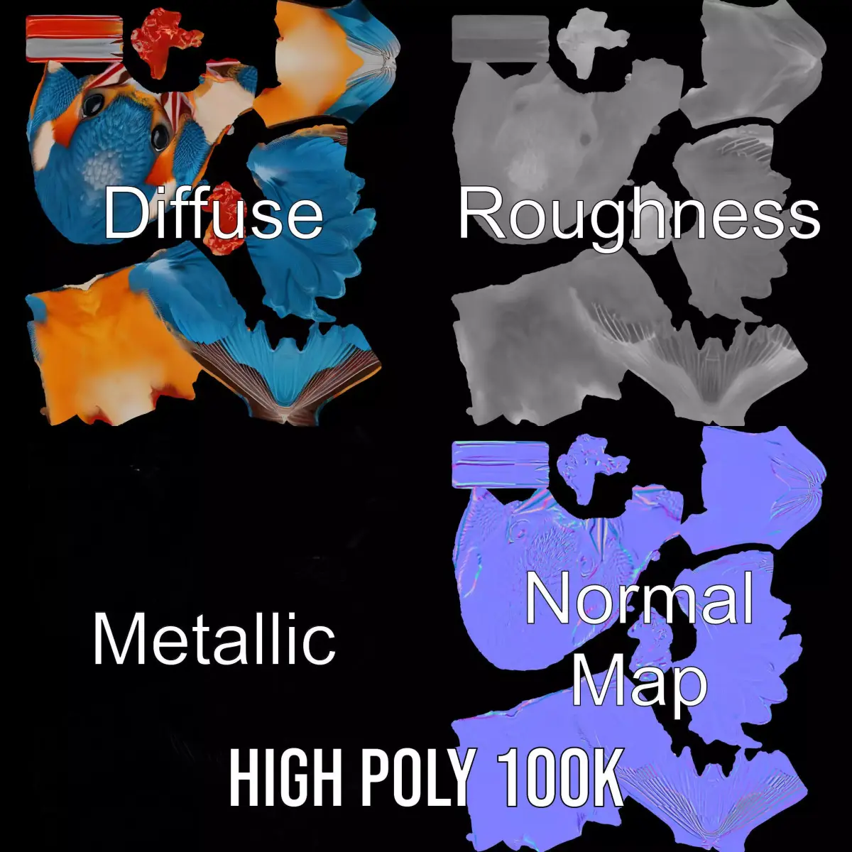 The model's textures are PBR, Diffuse, NormalMap, and reflection/roughness/metallic, which are suitable for any modern rendering engine. All models are accurately unwrapped and have no overlapping UV. All textures are 4096*4096 in size.