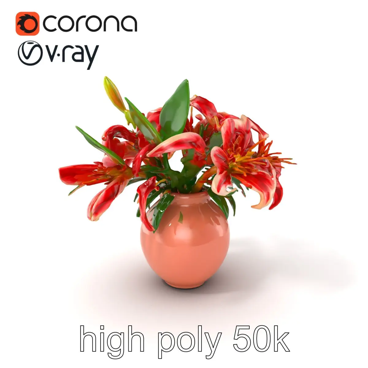Each model has 3 levels of detail: low-poly, middle-poly, and high-poly, which allows for the use of this model in production rendering (such as 3ds Max, Maya, Cinema 4D, Blender, Vray/Corona/Cycles and all other), game engines (Unity and Unreal compatible), and interactive presentations, providing a choice of detail based on the LOD System principle. This model is ideal for home décor simulations, architectural visualizations, and floral arrangement design.