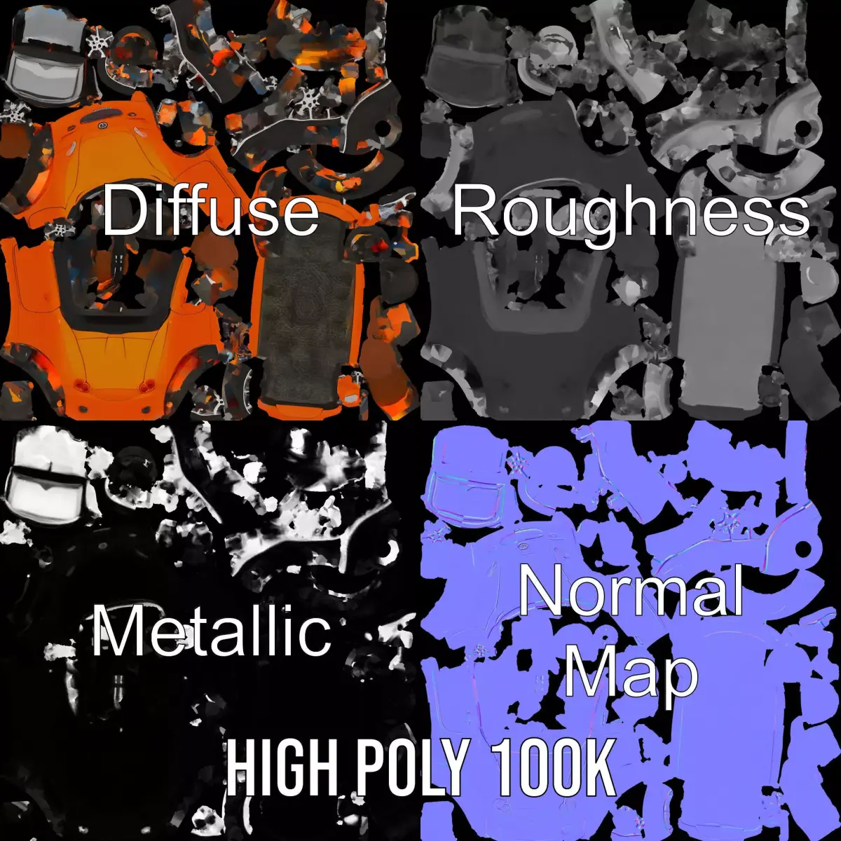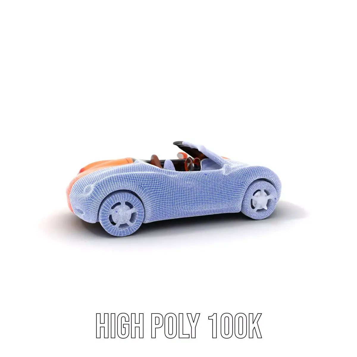 This vibrant orange convertible model is perfect for showcasing luxury detailing and sleek design. Each model has 3 levels of detail: low-poly (1000 triangles for mobile), middle-poly (10,000 triangles for environment), and high-poly (100,000 triangles), which allows for the use of this model in production rendering (such as 3ds Max, Maya, Cinema4D, Blender, Vray/Corona/Cycles and all others), game engines (Unity and Unreal compatible), and interactive presentations, providing a choice of detail based on the LOD System principle. Ideal for automotive showrooms, driving simulators, or visual effects in movie productions. The model's textures are PBR, Diffuse, NormalMap, and reflection/roughness/metallic, with 4096*4096 texture resolution suitable for any modern rendering engine. All models are accurately unwrapped and have no overlapping UVs. Please like and leave a comment for the model if you enjoyed it.