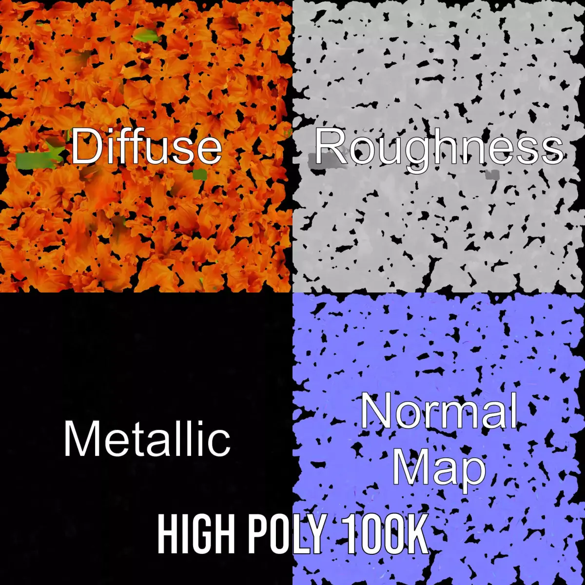 The vibrant orange flower 3D model captures the intricate details of each petal and the rich color tones, providing a lifelike and aesthetically pleasing representation. Each model has 3 levels of detail: low-poly (1000 triangles for mobile), middle-poly (10,000 triangles for environment), and high-poly (100,000 triangles) for production rendering. It is suitable for use in animations, botanical illustrations, and virtual gardens both in game engines like Unity and Unreal, and in interactive presentations. The textures are PBR, Diffuse, NormalMap, and reflection/roughness/metallic, accurately unwrapped with no overlapping UVs, all textures sized at 4096*4096. The first image is the reference used for creating the 3D model. It is important to carefully evaluate the quality of the model by examining the preview images that display the topology and polygonal mesh. These previews (WIRE and WEB 3D Preview) clearly demonstrate how accurately the model matches the original reference and how well the geometry has been executed. Please like and leave a comment if you find this model useful.