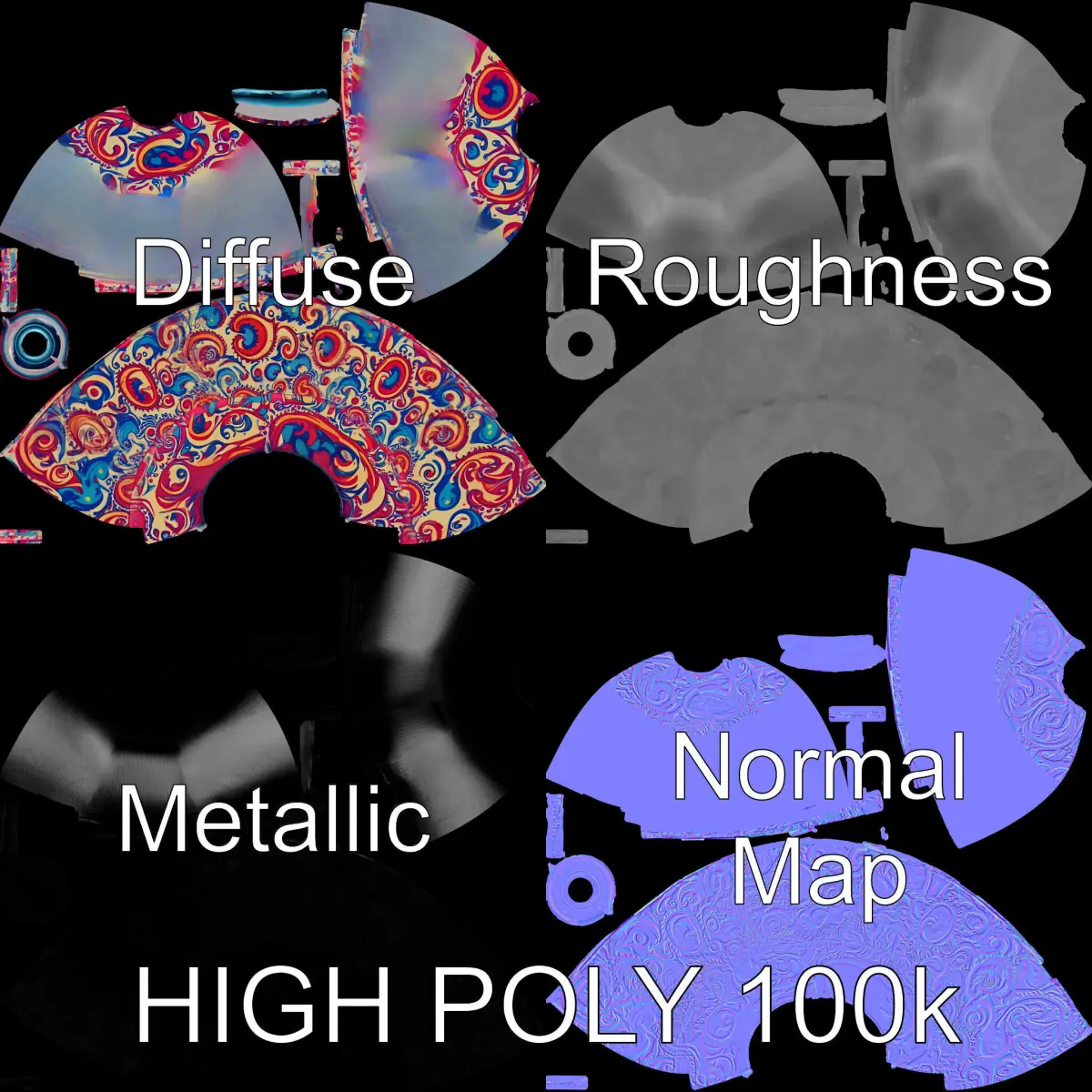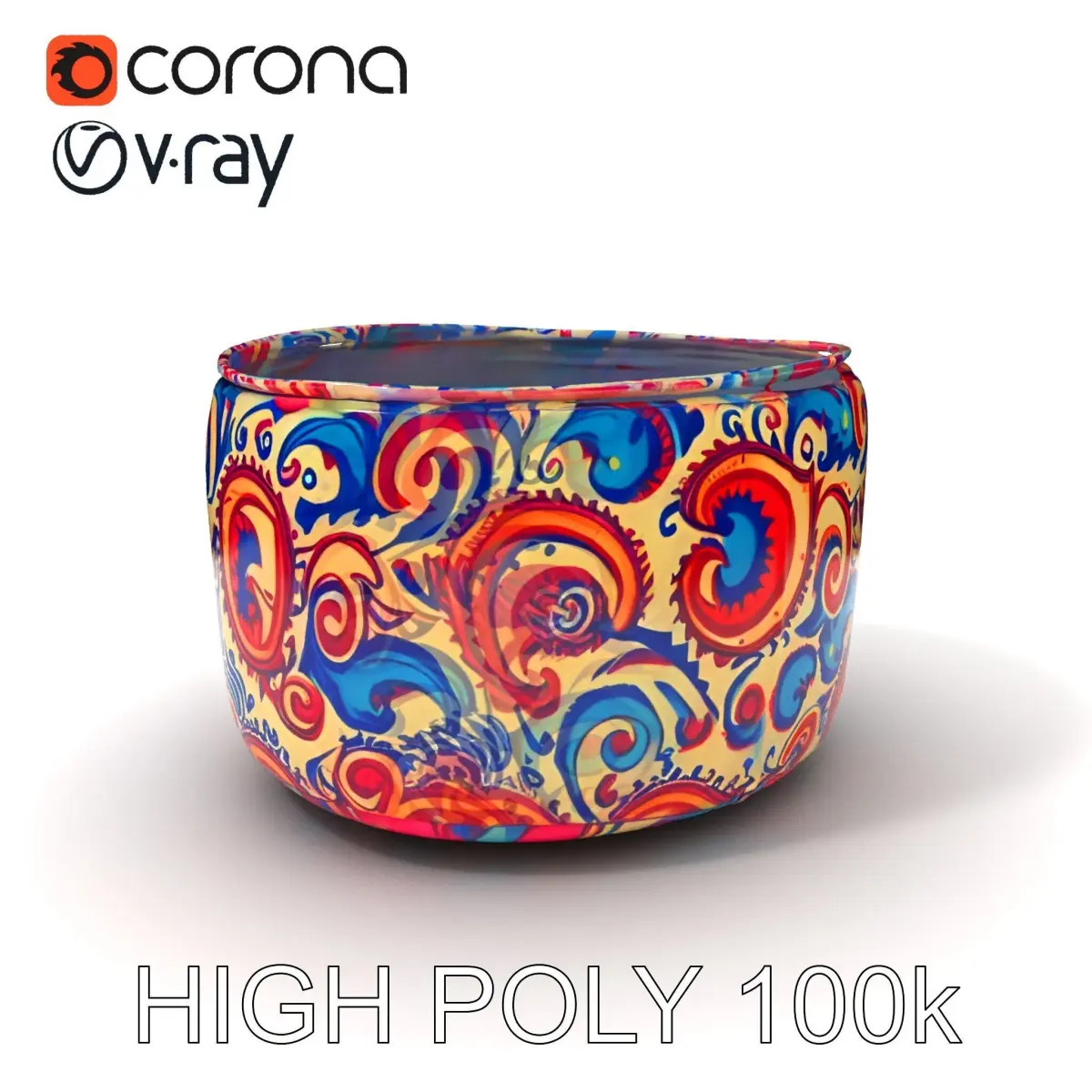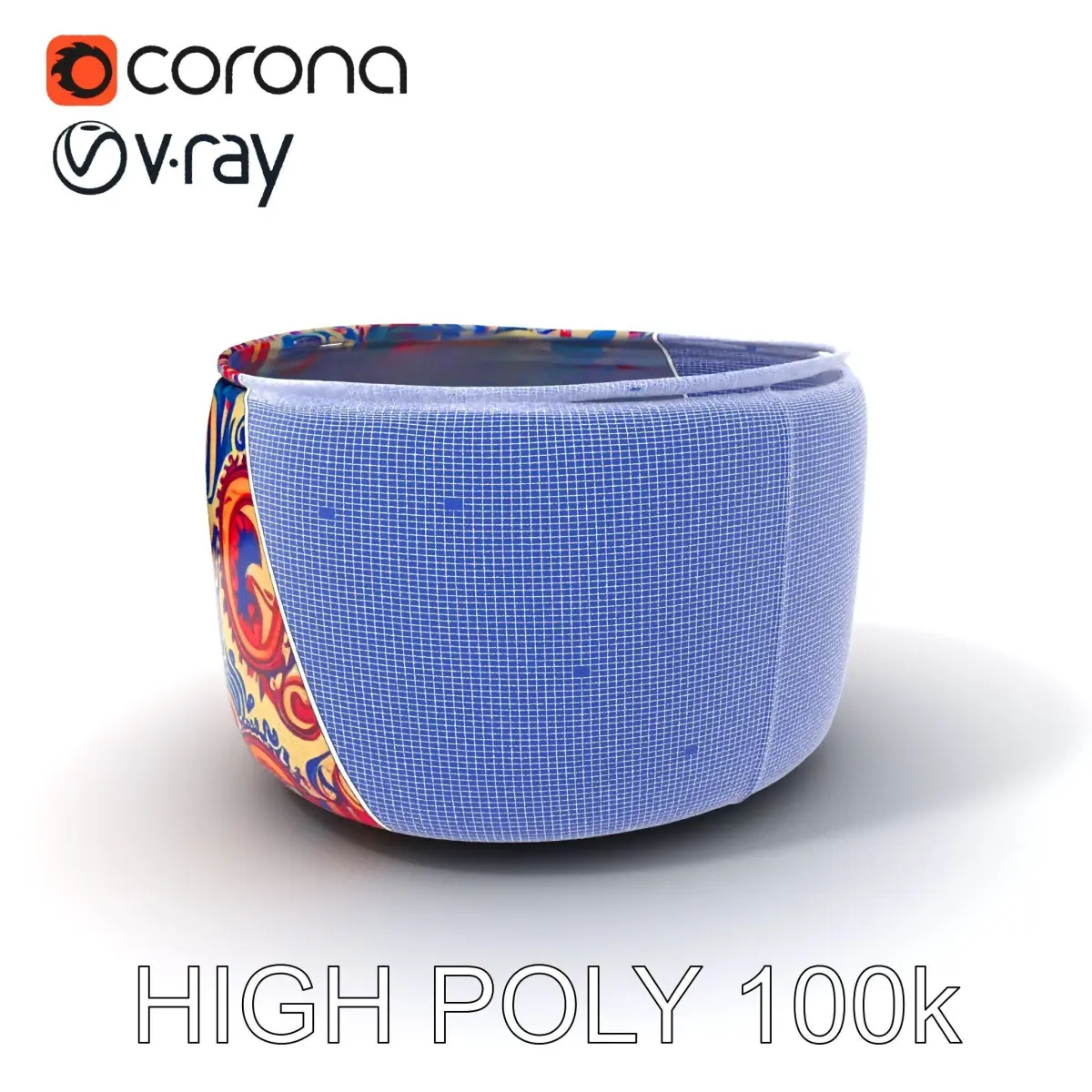 The 3D Ottoman model pack includes three levels of detail: low-poly for mobile applications, middle-poly for environment setups, and high-poly for detailed production rendering. This versatile model can be used in interior design projects, game environments, and virtual staging. Its vibrant pattern and precise geometry make it an ideal choice for realistic visualizations. Textures are PBR compliant, featuring Diffuse, NormalMap, and reflection/roughness/metallic maps, ensuring compatibility with modern rendering engines. This model is accurately unwrapped with no overlapping UVs, providing clean results across all platforms. All textures are 4096*4096 in size, enhancing detail and realism.