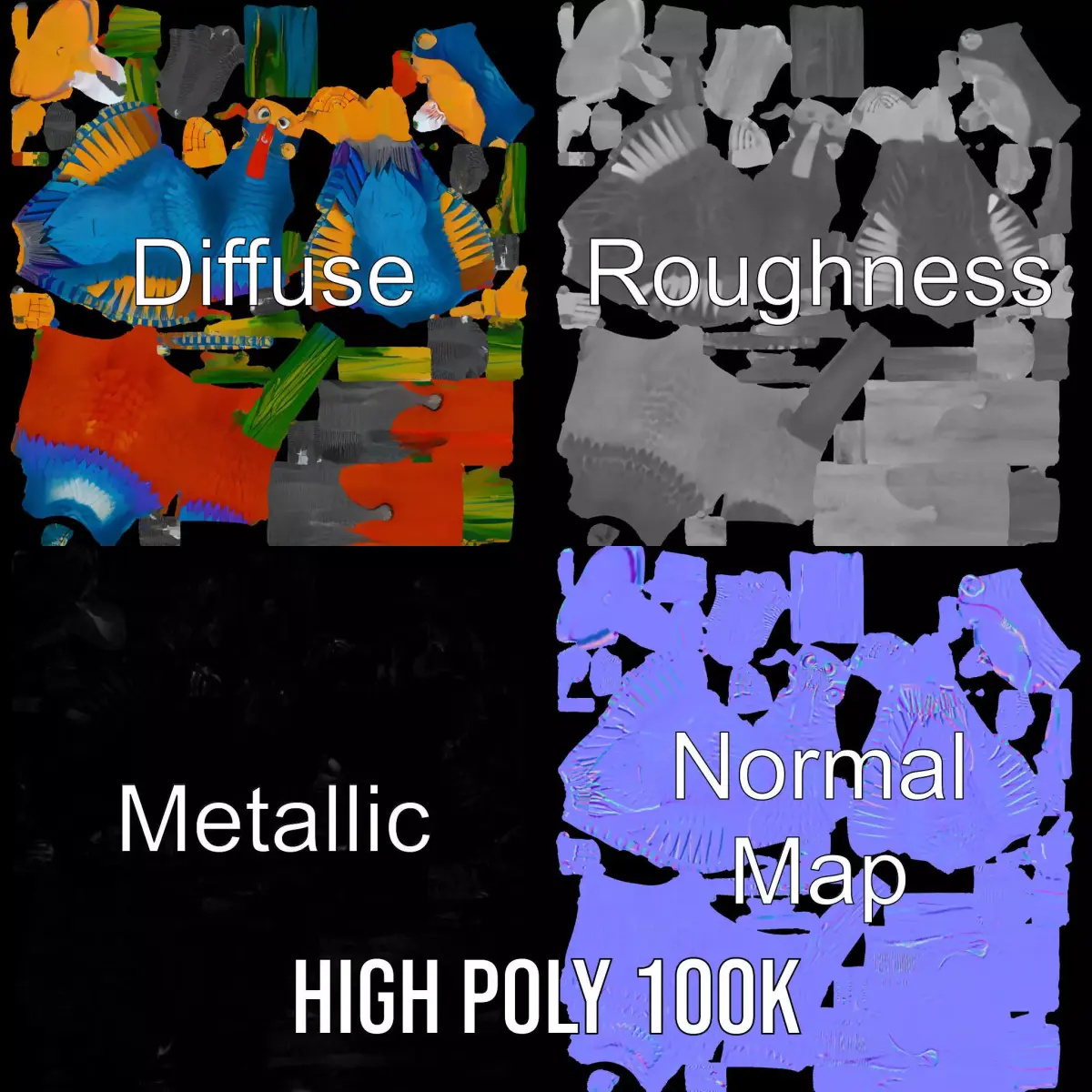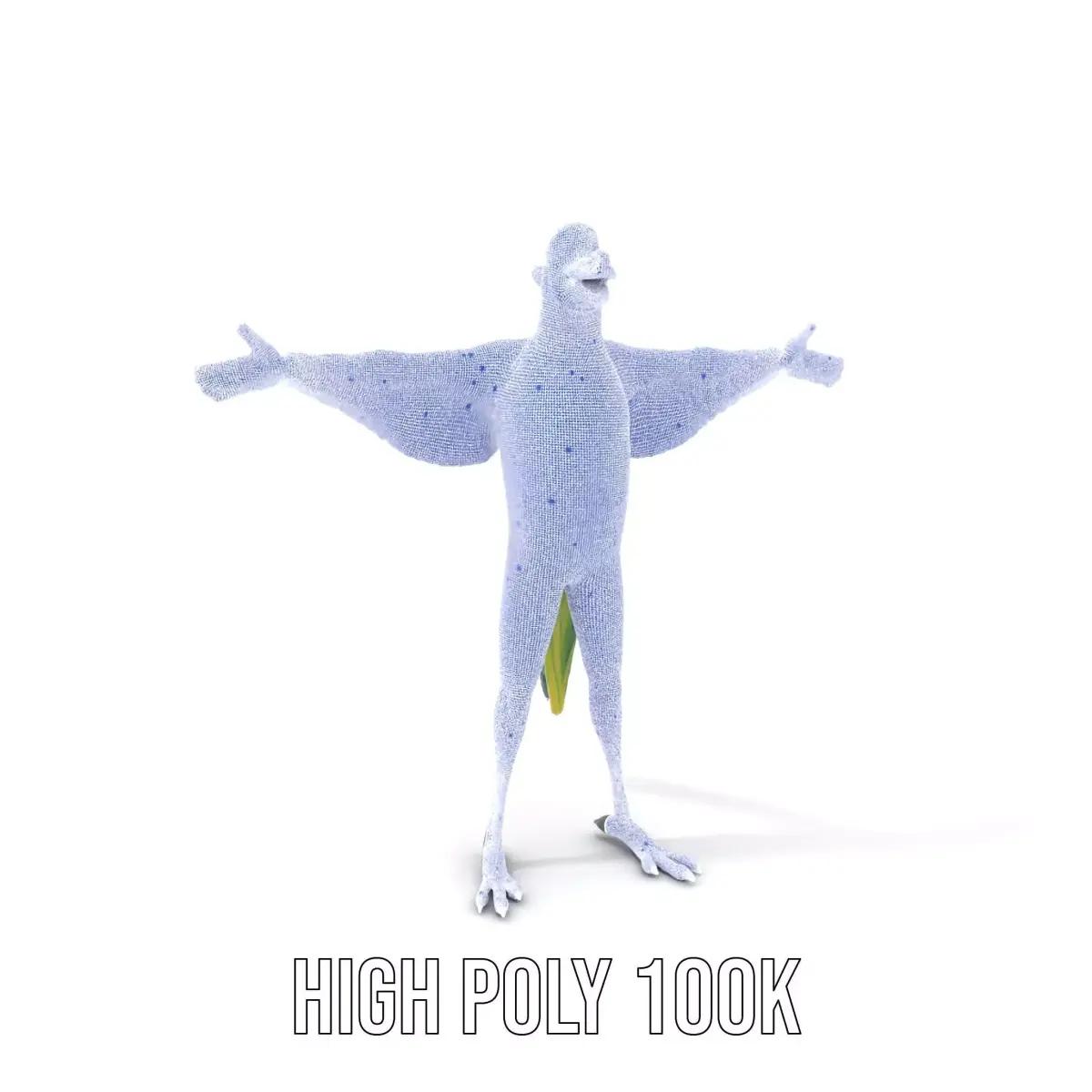 This Vibrant Parrot Character model pack features a colorful and playful bird character perfect for animations, games, and visual storytelling. Each model has 3 levels of detail: low-poly(1000 triangles for mobile), middle-poly(10 000 triangles for environment), and high-poly(100 000 triangles), which allows for the use of this model in production rendering (such as 3ds max, Maya, Cinema4D, Blender, Vray/Corona/Cycles and all other), game engines (Unity and Unreal compatible), and interactive presentations, providing a choice of detail based on the LOD System principle. The model's vivid colors and expressive design make it ideal for children's content and entertainment applications. The model's textures are PBR, Diffuse, NormalMap, and reflection/roughness/metallic, which are suitable for any modern rendering engine. All models accurately unwrapped and have no overlapping UV. All textures are 4096*4096 in size. If you like this model, please leave a comment and like it!