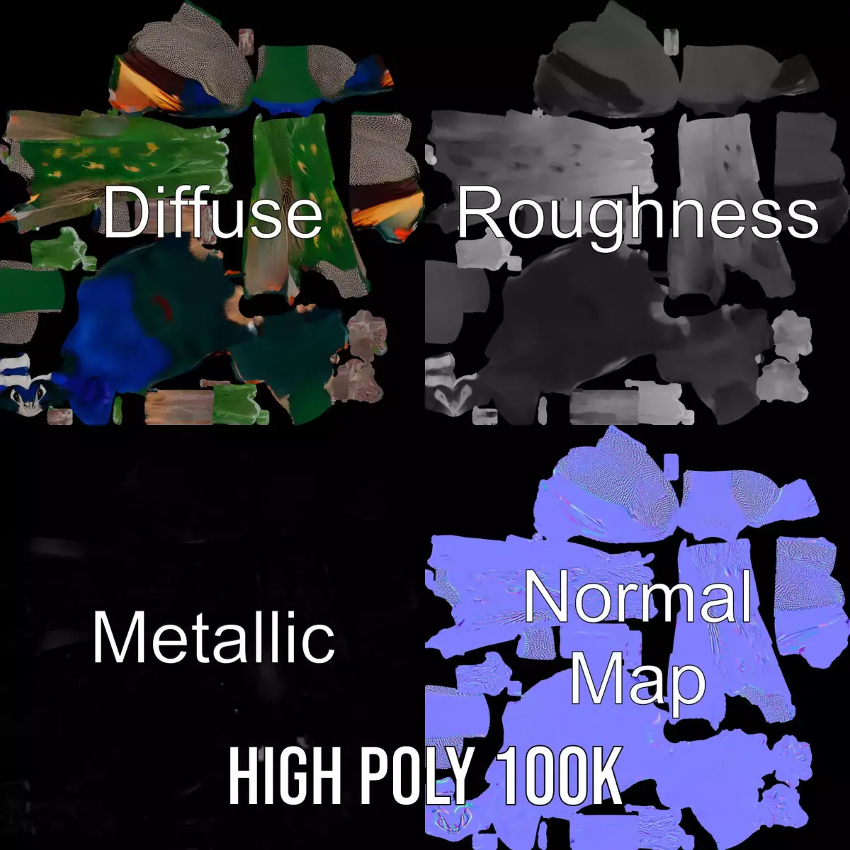 This 3D model captures the elegance and vibrant colors of a peacock, perfect for enhancing visual environments. With rich textures and lifelike details, it's ideal for wildlife simulations, educational content, or decorative visualizations. Each model has 3 levels of detail: low-poly (1000 triangles for mobile), middle-poly (10,000 triangles for environment), and high-poly (100,000 triangles), allowing for versatile use in production rendering (such as 3ds Max, Maya, Cinema4D, Blender, Vray/Corona/Cycles and all others), game engines (Unity and Unreal compatible), and interactive presentations. The model's textures are PBR, Diffuse, Normal Map, and reflection/roughness/metallic, suitable for any modern rendering engine. All textures are 4096x4096 in size. All models are accurately unwrapped with no overlapping UVs. Please like and leave a comment if you enjoy the model.