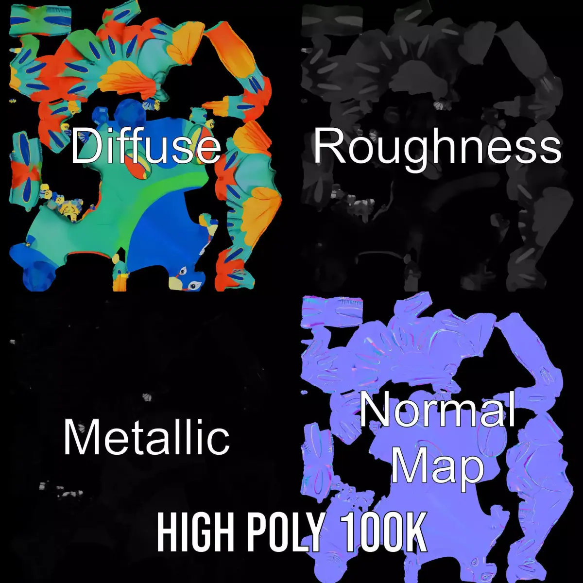 The Vibrant Peacock model pack features a colorful, inflatable peacock ideal for whimsical scenes, event decorations, or children’s entertainment settings. Its vivid color palette and fun design make it perfect for lively digital environments. Each model has 3 levels of detail: low-poly (1000 triangles for mobile), middle-poly (10,000 triangles for environment), and high-poly (100,000 triangles), allowing for use in production rendering (such as 3ds Max, Maya, Cinema4D, Blender, V-Ray/Corona/Cycles), game engines (Unity and Unreal compatible), and interactive presentations, providing a choice of detail based on the LOD System principle. The model's textures are PBR, Diffuse, NormalMap, and reflection/roughness/metallic, suitable for any modern rendering engine. All models are accurately unwrapped with no overlapping UVs. All textures are 4096x4096 in size. If you enjoyed this model, please like and leave a comment.