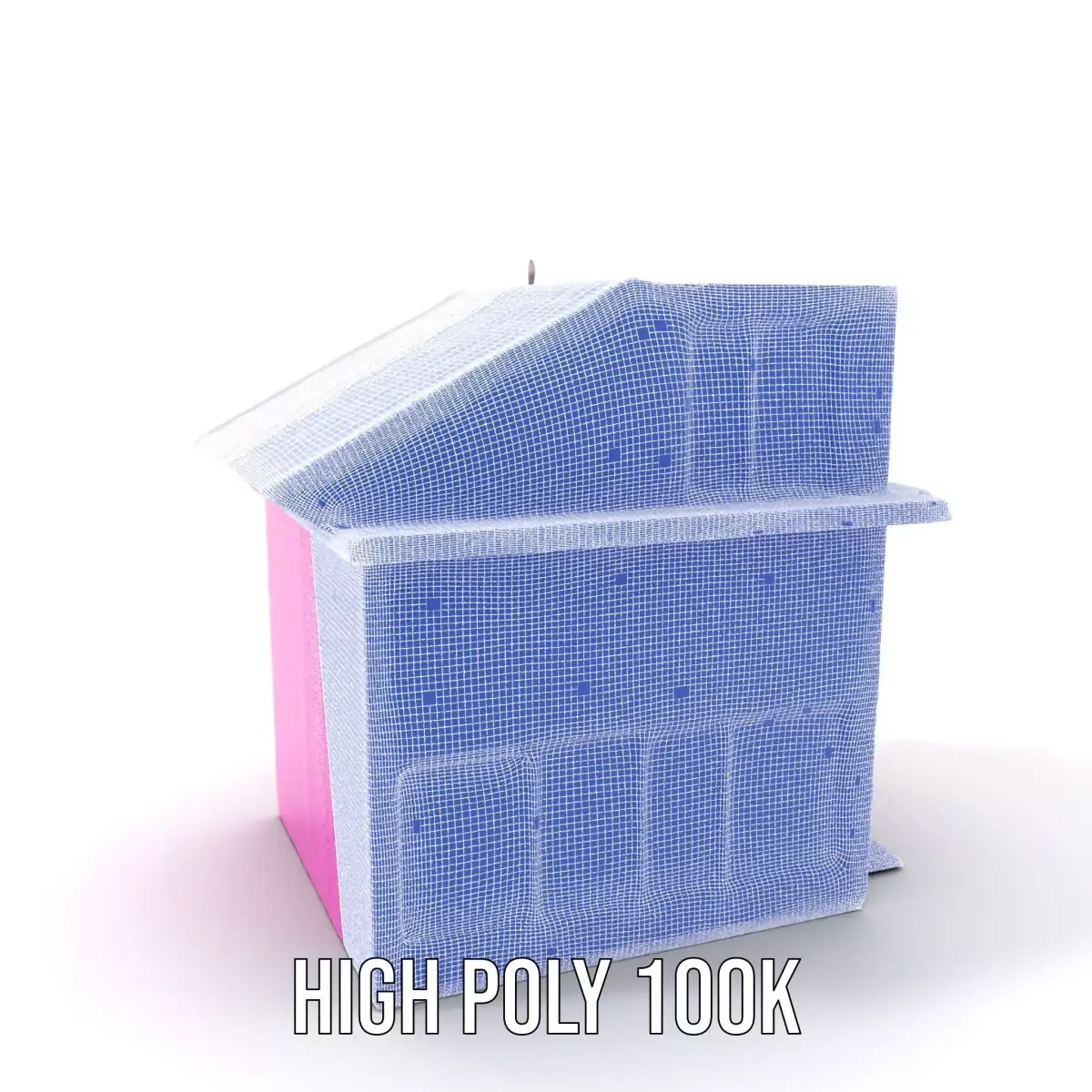 This vibrant pink house model pack features a modern, stylish design with a striking pink exterior and large windows, making it ideal for architectural visualizations, game development, or VR simulations. Each model has 3 levels of detail: low-poly (1000 triangles for mobile), middle-poly (10,000 triangles for environment), and high-poly (100,000 triangles), which allows for the use of this model in production rendering (such as 3ds Max, Maya, Cinema4D, Blender, Vray/Corona/Cycles and all other), game engines (Unity and Unreal compatible), and interactive presentations, providing a choice of detail based on the LOD System principle. Perfect for urban cityscapes or standalone visual projects, this model brings a touch of contemporary flair. The model's textures are PBR, Diffuse, NormalMap, and reflection/roughness/metallic, which are suitable for any modern rendering engine. All models are accurately unwrapped and have no overlapping UV. All textures are 4096*4096 in size. This house model offers versatility and visual appeal for various applications.