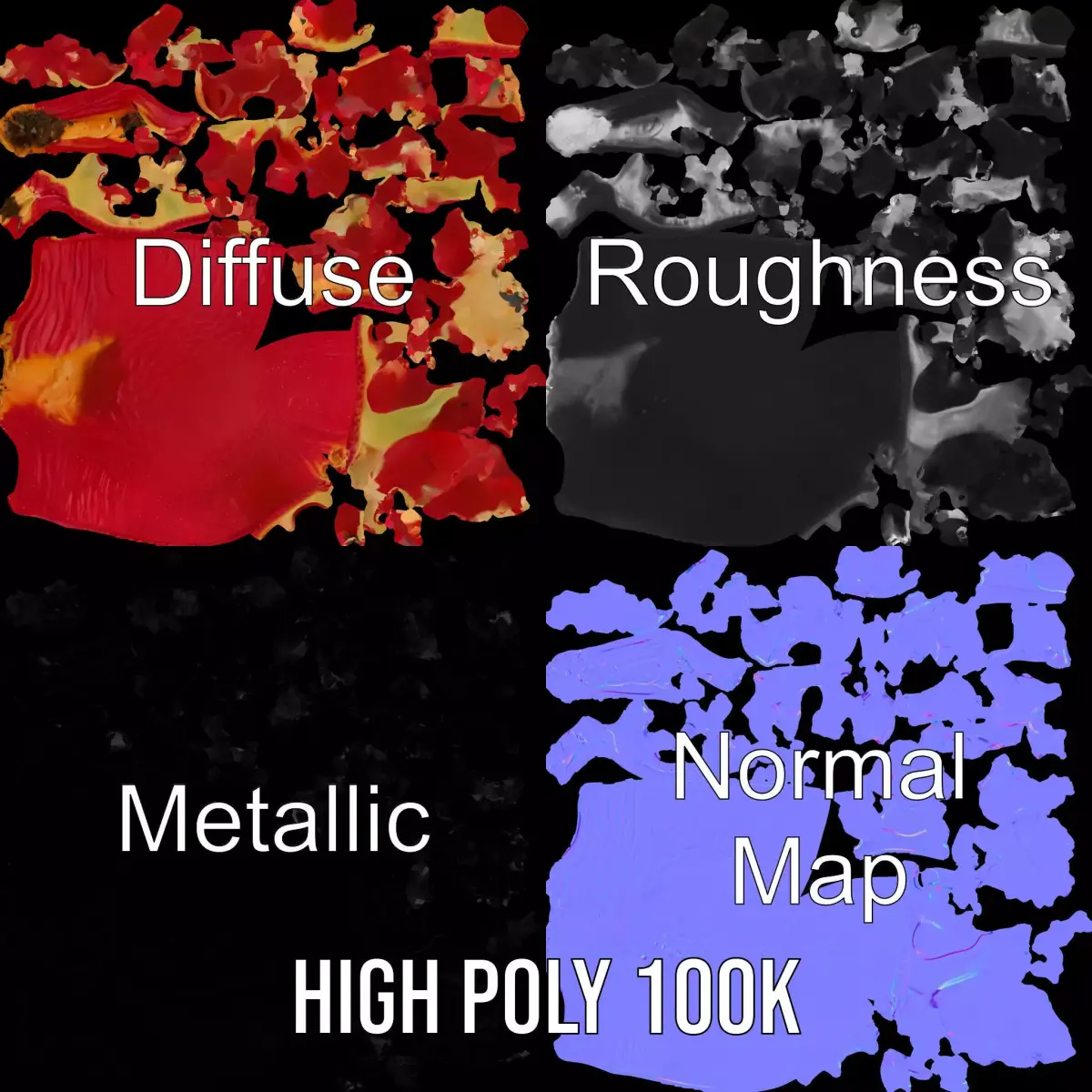 All textures included are PBR, Diffuse, NormalMap, and reflection/roughness/metallic, specifically optimized for modern rendering engines. The 3D models are accurately unwrapped with no overlapping UVs, ensuring ease of use and high-quality results. Each texture is at 4096x4096 resolution, providing crisp and detailed appearances.