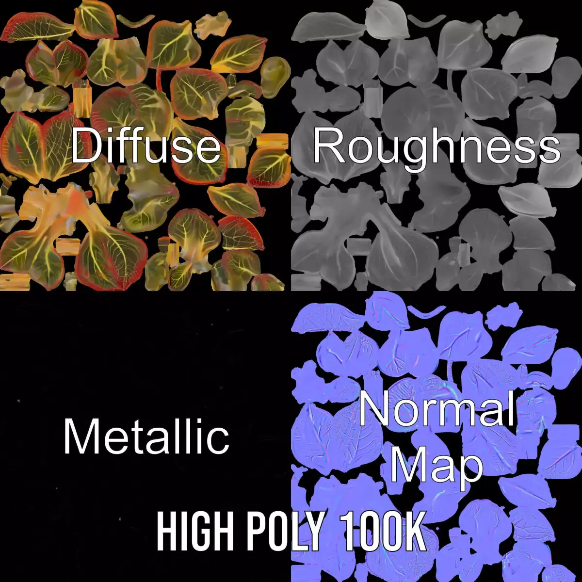 Ideal for architectural visualization, game design, and virtual plant simulations. The model's textures are PBR, Diffuse, NormalMap, and reflection/roughness/metallic, which are suitable for any modern rendering engine. All models are accurately unwrapped and have no overlapping UV. All textures are 4096*4096 in size.