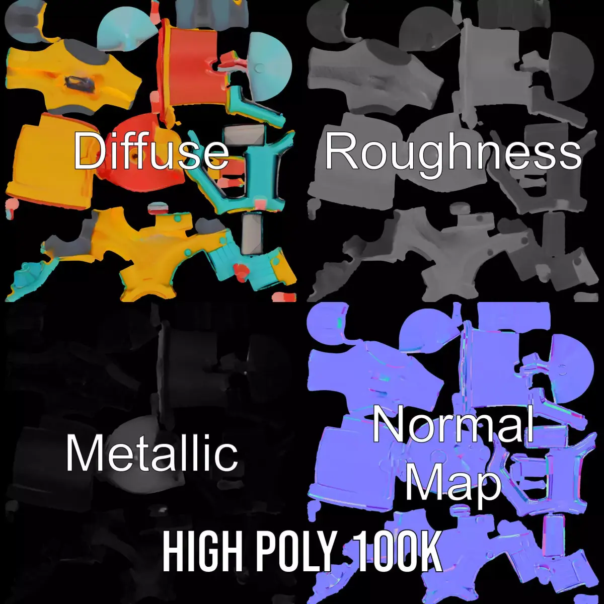The Vibrant Water Blaster model pack features a playful and colorful design, perfect for children's games or animated scenes. Its vivid colors and plastic finish make it ideal for summer-themed environments or toy stores. Each model has 3 levels of detail: low-poly (1000 triangles for mobile), middle-poly (10,000 triangles for environment), and high-poly (100,000 triangles), which allows for the use of this model in production rendering (such as 3ds Max, Maya, Cinema4D, Blender, Vray/Corona/Cycles and all others), game engines (Unity and Unreal compatible), and interactive presentations, providing a choice of detail based on the LOD System principle. The model's textures are PBR, Diffuse, NormalMap, and reflection/roughness/metallic, suitable for any modern rendering engine. All models are accurately unwrapped with no overlapping UVs. All textures are 4096x4096 in size. If you like this model, please leave a like and comment!