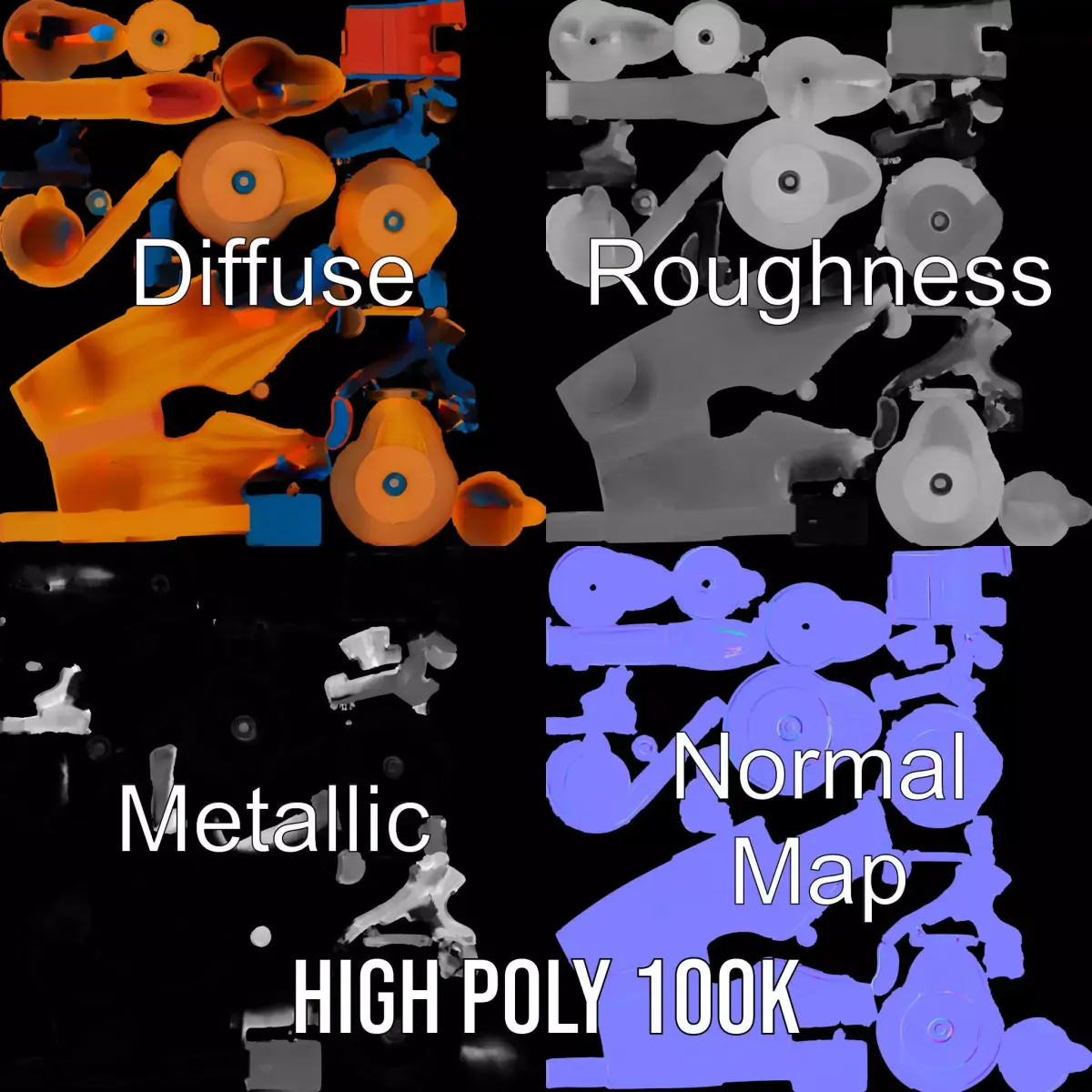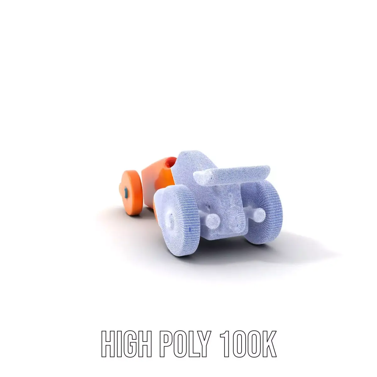 This vibrant wooden car model boasts a playful combination of orange and blue hues, perfect for adding a cheerful touch to any scene or project. Each model has 3 levels of detail: low-poly (1000 triangles for mobile), middle-poly (10,000 triangles for environment), and high-poly (100,000 triangles), allowing for use in production rendering (such as 3ds Max, Maya, Cinema 4D, Blender, Vray/Corona/Cycles, and more), game engines (Unity and Unreal compatible), and interactive presentations, offering a choice of detail based on the LOD system. Ideal for animation, virtual environments, and educational software, this model's PBR, Diffuse, NormalMap, and reflection/roughness/metallic textures ensure suitability for modern rendering engines. All models are accurately unwrapped with no overlapping UV. Textures are 4096*4096 in size. Please like and leave a comment if you enjoy the model.