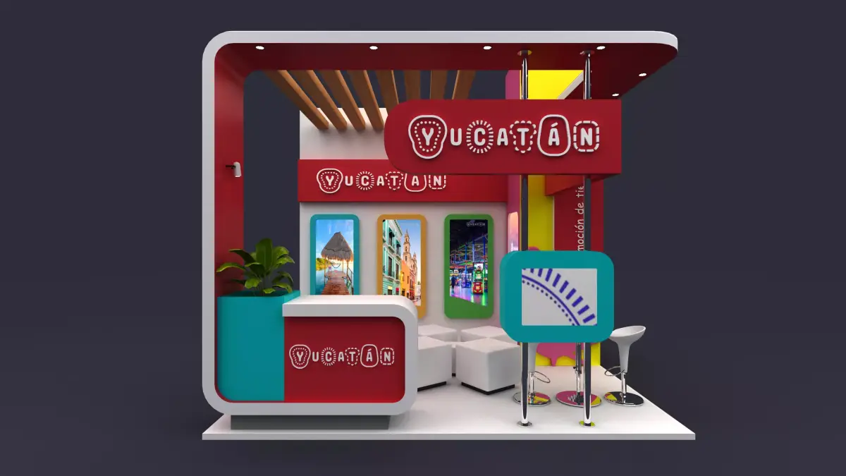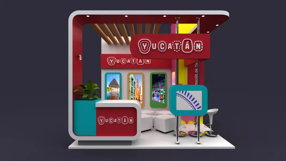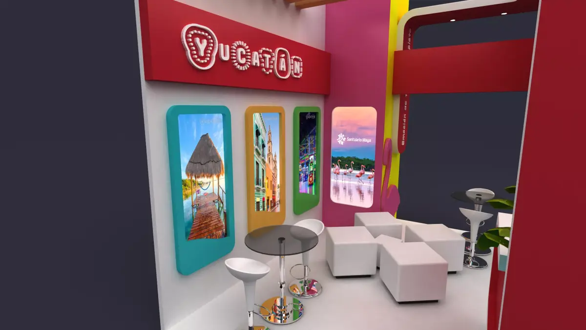 The booth measures 3x4 meters and is designed to reflect the vibrant and lively spirit of Yucatán, an island known for its rich culture and vivid aesthetic.