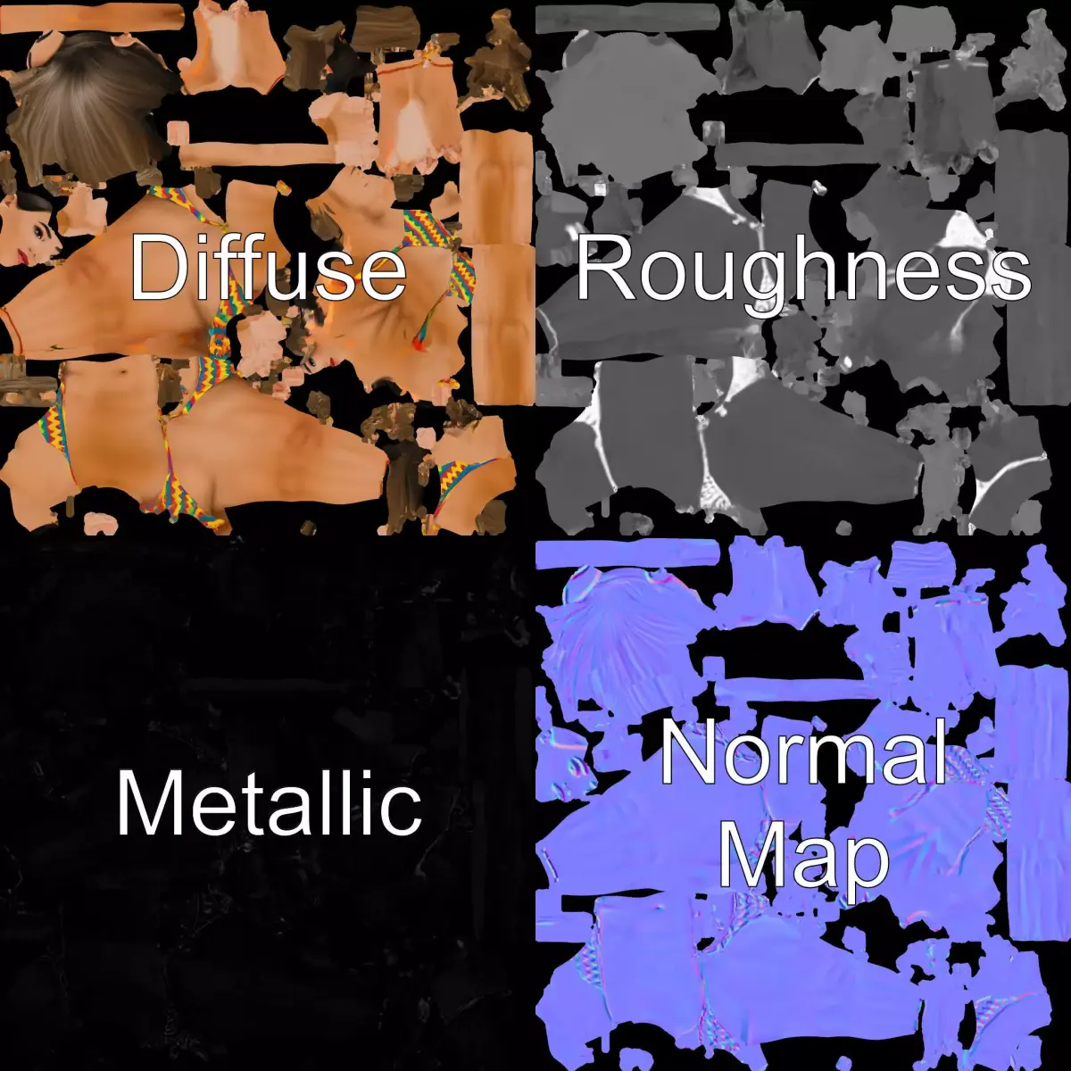 This 3D model pack features a female character wearing a vibrant zigzag patterned swimsuit. Ideal for adding lively and colorful elements to your digital scenes, this model is perfect for summer or beach themed projects. Each model has 3 levels of detail: low-poly (1000 triangles for mobile), middle-poly (10,000 triangles for environment), and high-poly (100,000 triangles), which allows for the use of this model in production rendering (such as 3ds Max, Maya, Cinema 4D, Blender, Vray/Corona/Cycles and all other), game engines (Unity and Unreal compatible), and interactive presentations, providing a choice of detail based on the LOD System principle. The model's textures are PBR, Diffuse, NormalMap, and reflection/roughness/metallic, which are suitable for any modern rendering engine. All models are accurately unwrapped and have no overlapping UV. All textures are 4096x4096 in size. Consider using this model for interactive virtual tours, advertising, or digital marketing campaigns requiring high-quality character assets. Please like and leave a comment if you enjoyed the model.