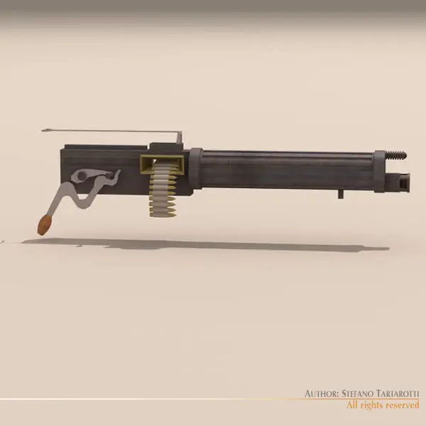 The Vickers machine gun or Vickers gun is a name primarily used to refer to the water-cooled .303 inch (7.7 mm) machine gun produced by Vickers Limited, originally for the British Army. The machine gun typically required a six- to eight-man team to operate: one to fire, one to feed the ammunition, and the rest to help carry the weapon, its ammunition and spare parts. It served from before the First World War until after the end of the Second World War.