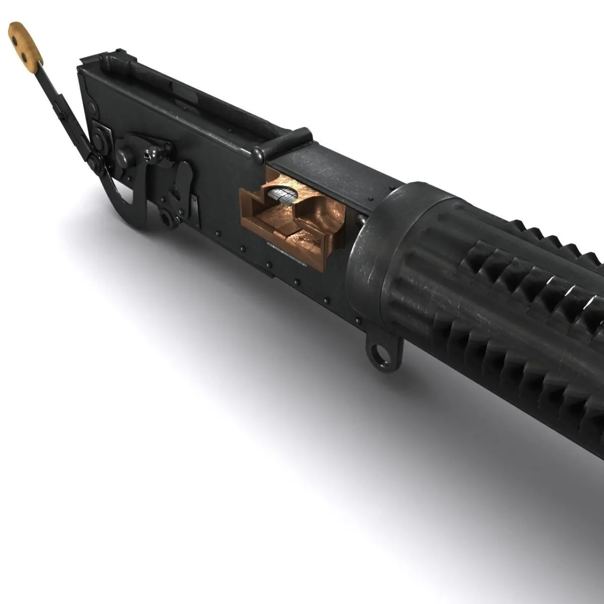 Modeled as MID-Poly object.UV Coordinats applied to whole gun surface,except ammo feed.