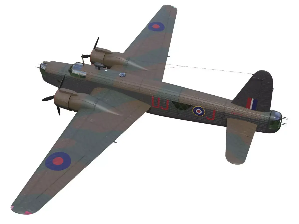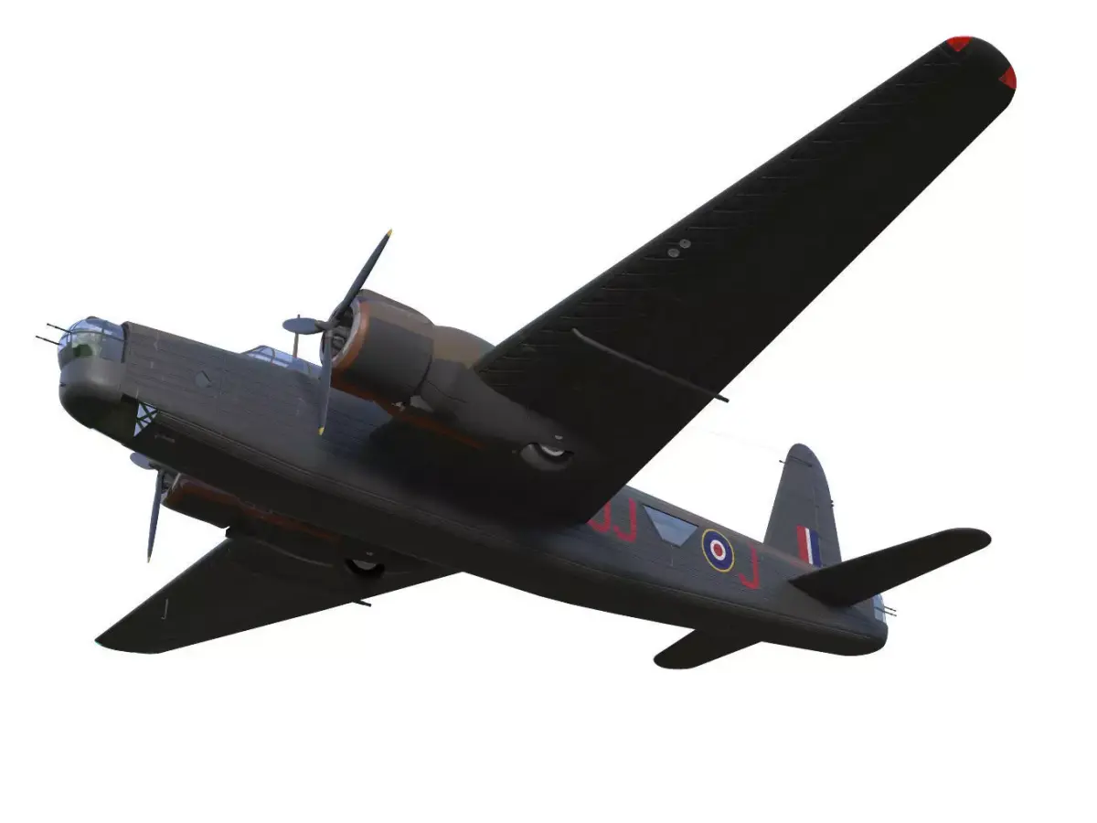The Vickers Wellington was a twin-engine bomber operated by the Royal Air Force during the early stages of World War II.The model's landing gear is separated into parts for flight mode and landing mode.(Located in the gopen.gclose folder.)Due to export processes, the texture of the original data may sometimes change.Moving parts are separated. However, please be aware that rigging is not applied.The interior of the fuselage is not modeled.This model is not intended for use in games or other low-poly applications.This model is not intended for 3D printing.Please be aware of this when purchasing.