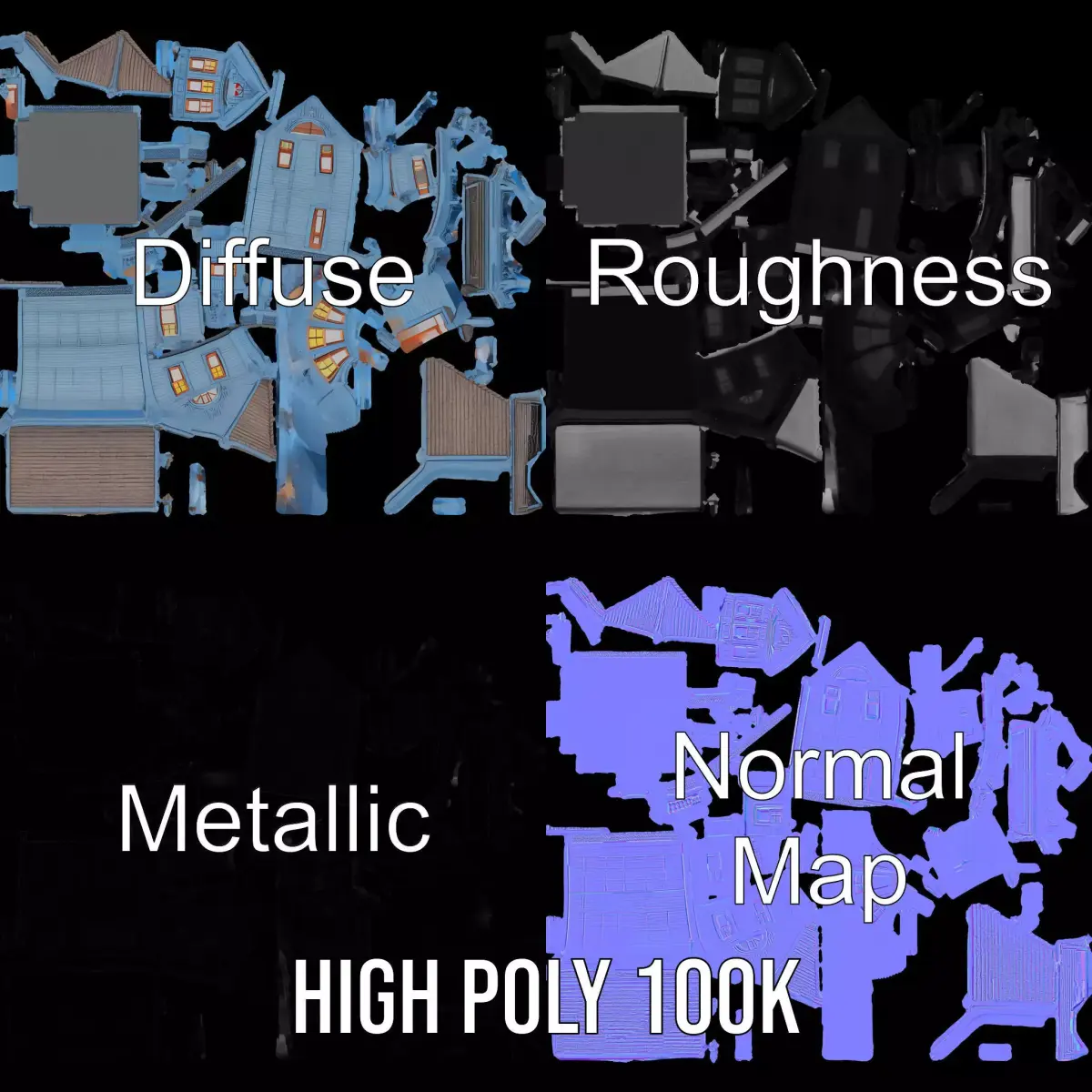 This Victorian Blue House model pack features a beautifully detailed and historically styled structure perfect for architectural visualization, game environments, or virtual reality projects. Each model has 3 levels of detail: low-poly (1000 triangles for mobile), middle-poly (10,000 triangles for environment), and high-poly (100,000 triangles), suitable for production rendering in 3ds Max, Maya, Cinema 4D, Blender, and game engines like Unity and Unreal. The model's textures are PBR, including Diffuse, NormalMap, and reflection/roughness/metallic, ensuring compatibility with any modern rendering engine. All models are accurately unwrapped with no overlapping UVs. Textures are sized at 4096*4096, providing high-resolution detail. If you enjoy this model, please like and leave a comment.