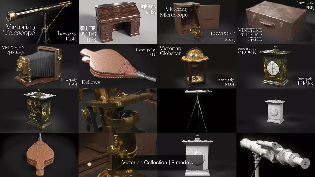 A collection of victorian era objects. All PBR low-poly models.......please see indivdual items for more detail.