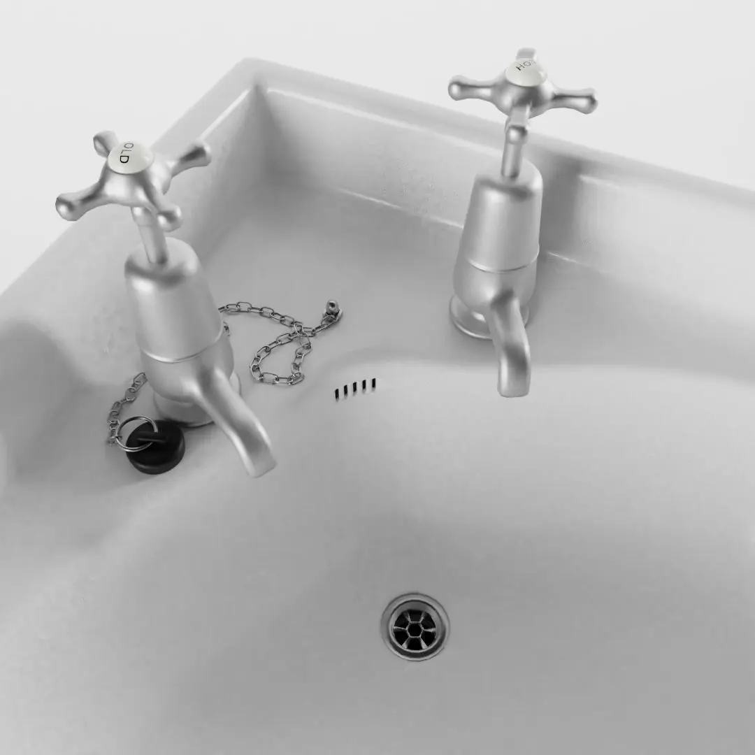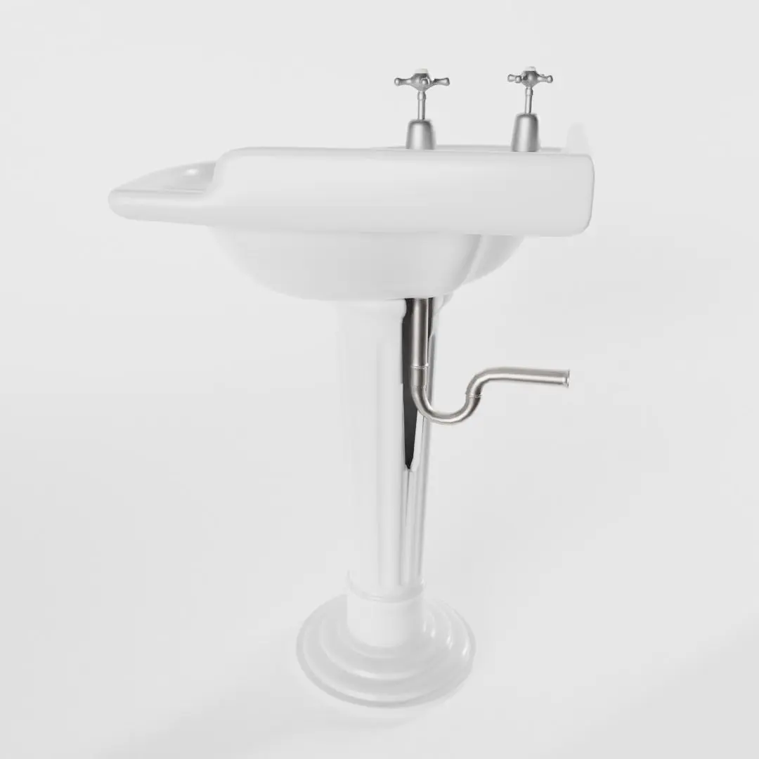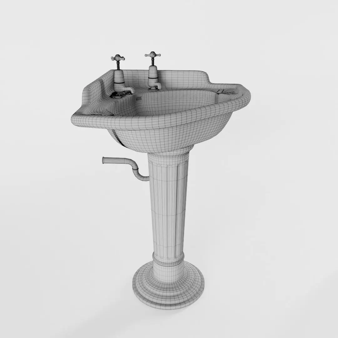 This model has real world scale and measures approximately 86 cm in length, 56 cm in depth and approximately 92 cm in height (with water taps).