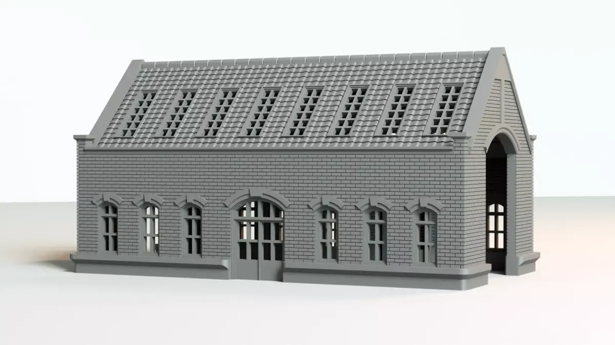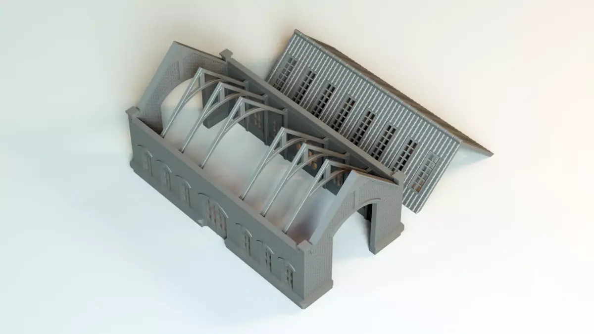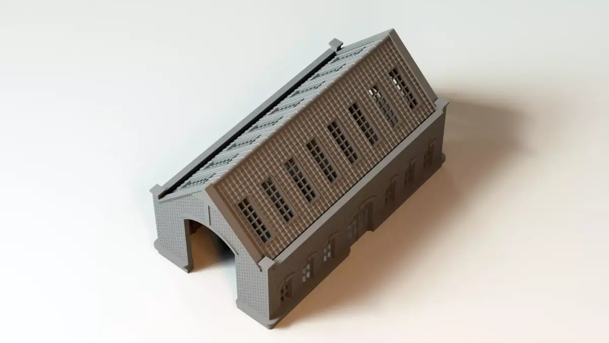 A highly detailed Victorian-era railway engine shed designed specifically for HO scale (1:87) 3D printing. Every part of this model has been designed with printability in mind and physically prototype-tested on a Bambu Lab P1S with a 0.4mm nozzle at 0.3mm line width.