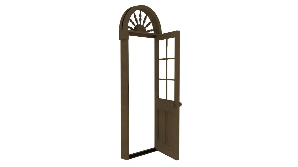 Wooden 6-light door with arched and optional toplight. Free, lowpoly asset.