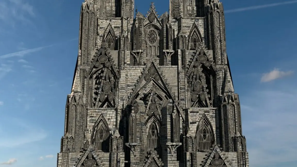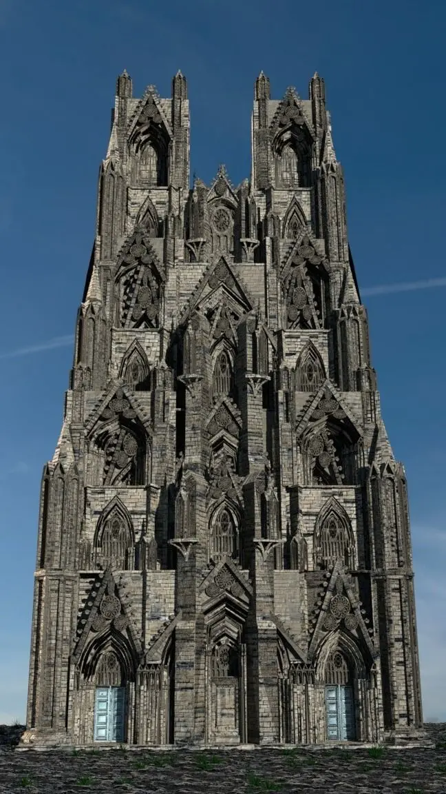 Detailed and photo-realistic original 3D model of a Victorian Neo-Gothic facade, excellent for use both in close range shots depicting the elaborate visual detail of the build and also backdrops, for period films/drama/games suitable for both close and long shots. Elaborate reliefs and furnishings of the eclectic Victorian Neo-Gothic style dominate the imposing build modelled on a Cathedral silhouette with industrial and machine-age modifications. Suitable for high-rise housing and/or industrial factories of the Victorian period, the top spires may act as chimneys as is portrayed in the preview images. Due to the similarity of this design with actual high Gothic cathedral works, this design could also be used as the centre piece of Medieval scenes. This design was created in Blender, is also currently available in fbx/obj/dae/3ds and is ready to be converted and/or rendered into ANY SUPPORTED 3D PROGRAMME for the desired effect of the customer, ready to be used straight away in games/film/media. All texture maps have been utilised for a realistic depiction (ambient occlusion, specular,normal,displacement,diffuse etc).