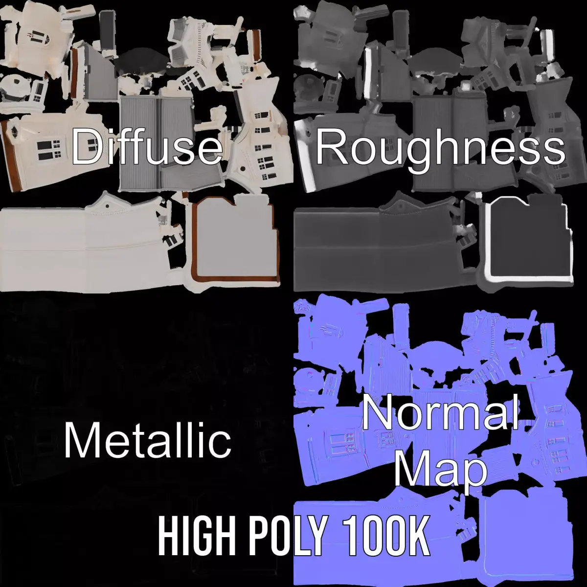This exquisite Victorian Ivory House model brings elegant architectural detail perfect for historical scenes, architectural visualizations, or educational projects. Each model has 3 levels of detail: low-poly (1000 triangles for mobile), middle-poly (10,000 triangles for environment), and high-poly (100,000 triangles), which allows for the use of this model in production rendering (such as 3ds Max, Maya, Cinema 4D, Blender, Vray/Corona/Cycles and all other), game engines (Unity and Unreal compatible), and interactive presentations, providing a choice of detail based on the LOD System principle. You can use this model in film production, video games, virtual reality experiences, or as a teaching tool for architectural history. The model's textures are PBR, Diffuse, NormalMap, and reflection/roughness/metallic, which are suitable for any modern rendering engine. All models accurately unwrapped and have no overlapping UVs. All textures are 4096*4096 in size. If you enjoy this model, please like and leave a comment!