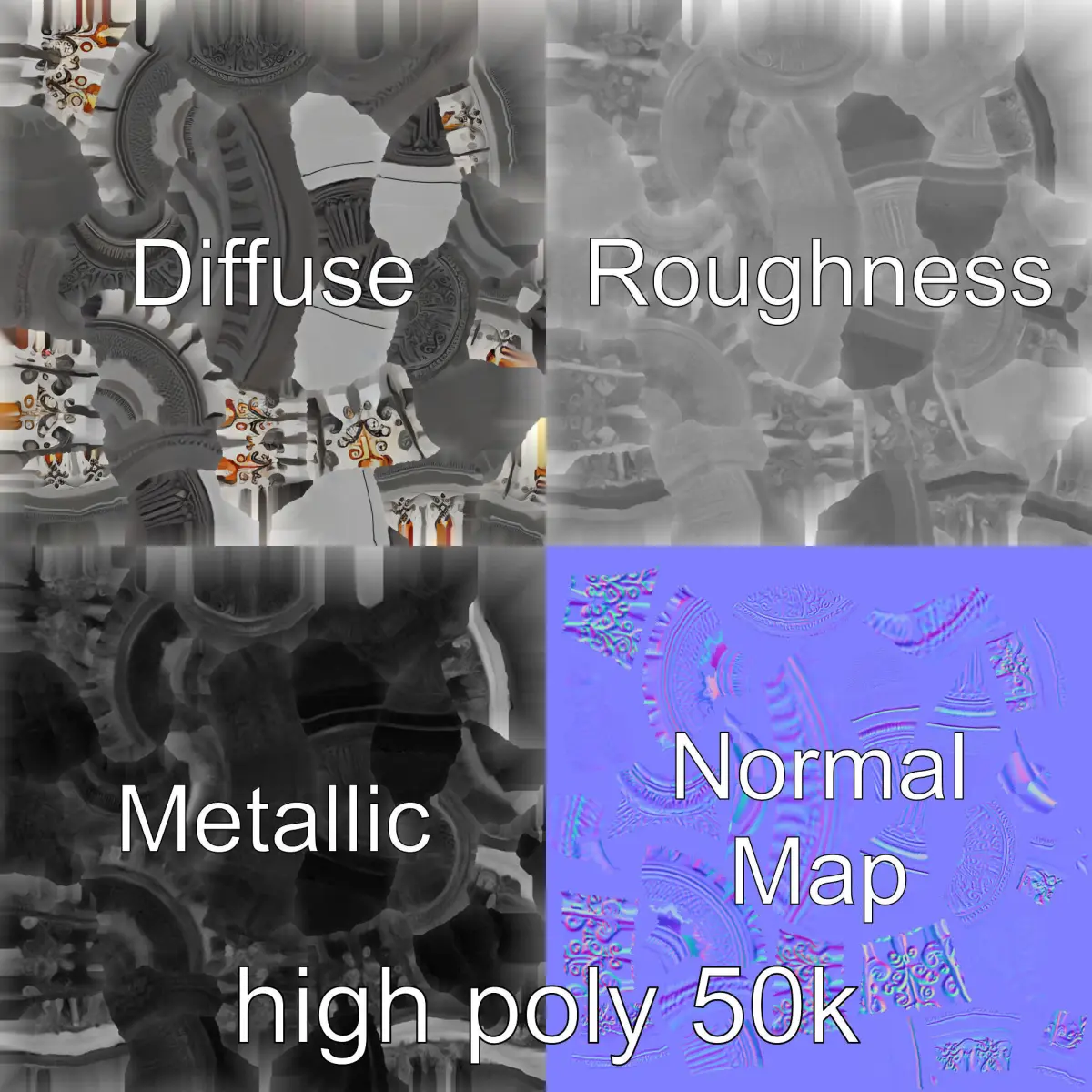 The model's textures are PBR, Diffuse, Normal Map, and reflection/roughness/metallic, which are suitable for any modern rendering engine. All models accurately unwrapped and have no overlapping UVs. All textures are 4096*4096 in size, ensuring high-quality rendering results.