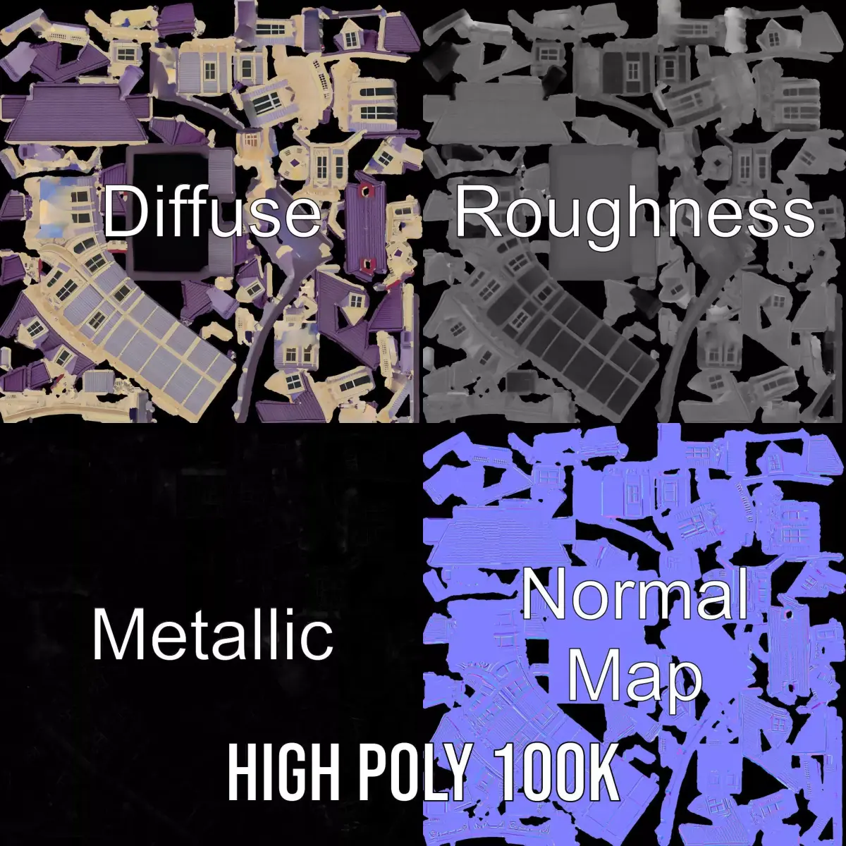 The Victorian Lavender House model pack is a stunning representation of classic Victorian architecture with intricate details and charming colors, perfect for any historical or fantasy setting. Each model has 3 levels of detail: low-poly (1000 triangles for mobile), middle-poly (10,000 triangles for environment), and high-poly (100,000 triangles), which allows for the use of this model in production rendering, game engines, and interactive presentations. The model's textures are PBR, Diffuse, NormalMap, and reflection/roughness/metallic, which are suitable for any modern rendering engine. All models are accurately unwrapped and have no overlapping UVs. Textures are 4096*4096 in size. Ideal for gaming, architectural visualization, or any creative project needing a touch of elegance. Please like and leave a comment if you enjoyed this model!