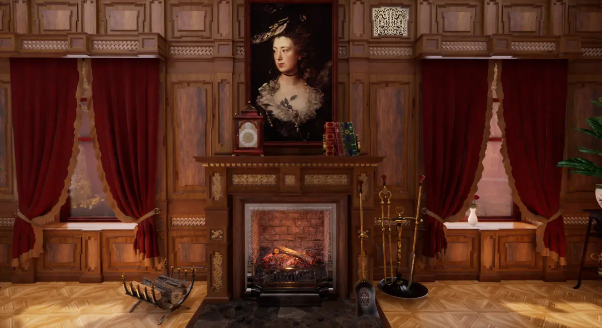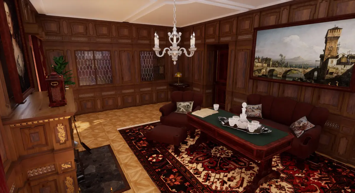 The room is a richly detailed Victorian living room interior, designed to evoke warmth, elegance, and quiet sophistication. This scene brings together a curated selection of previously crafted furniture and decor elements, forming a complete, immersive environment suitable for late 19th-century settings.