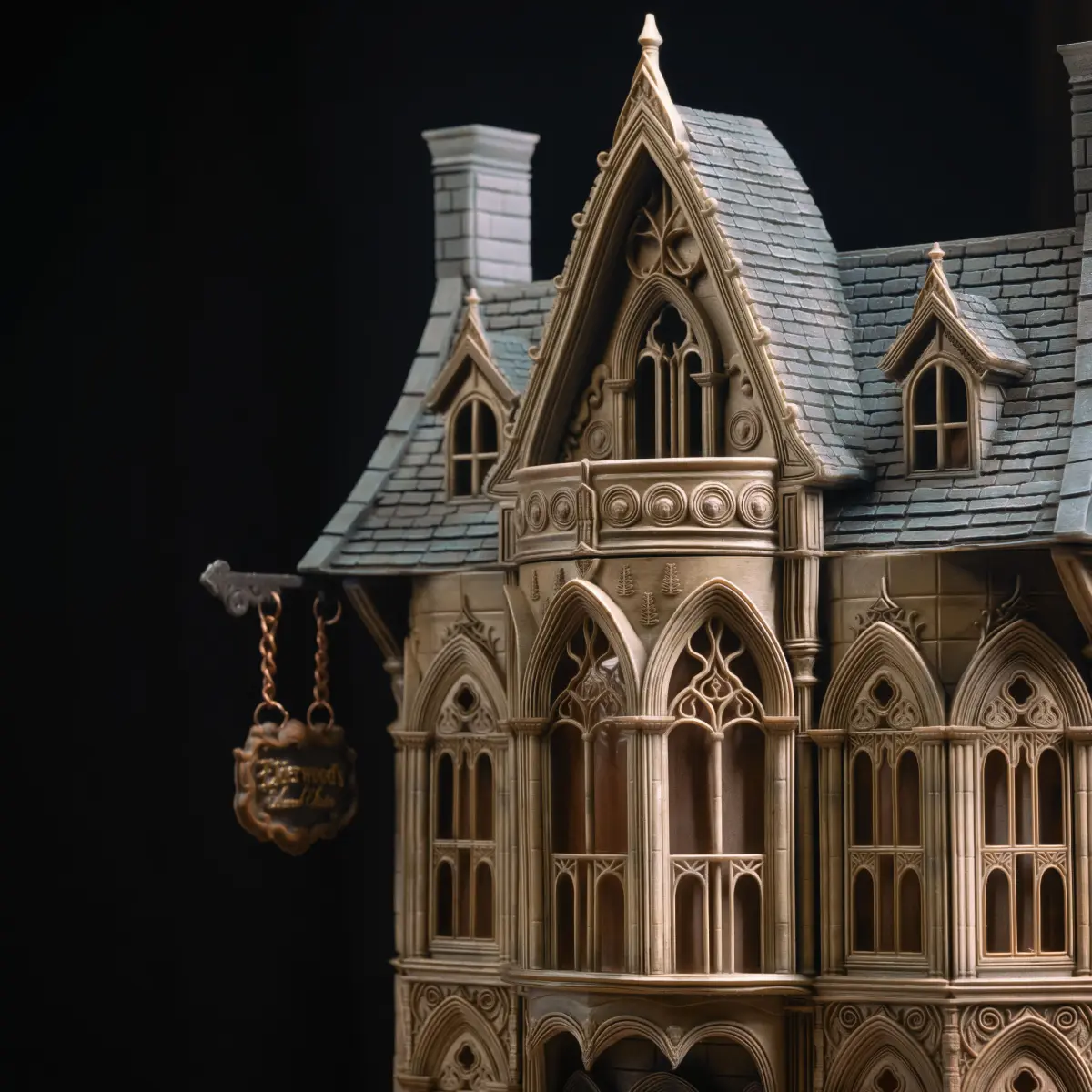Carefully modeled with layered textures, glowing windows, and a dangling shop sign, this 3D printable design invites you to bring a touch of cinematic wonder to your shelves.