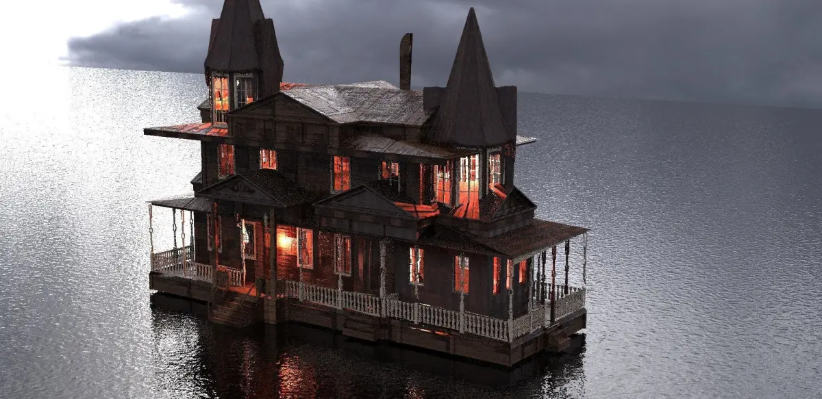 Victorian Mansion .Simple interior with tables Glass windows seperate subtoolsa as well as removable turrets ! Designed for mid to far of renders ! Tiled Textured provided