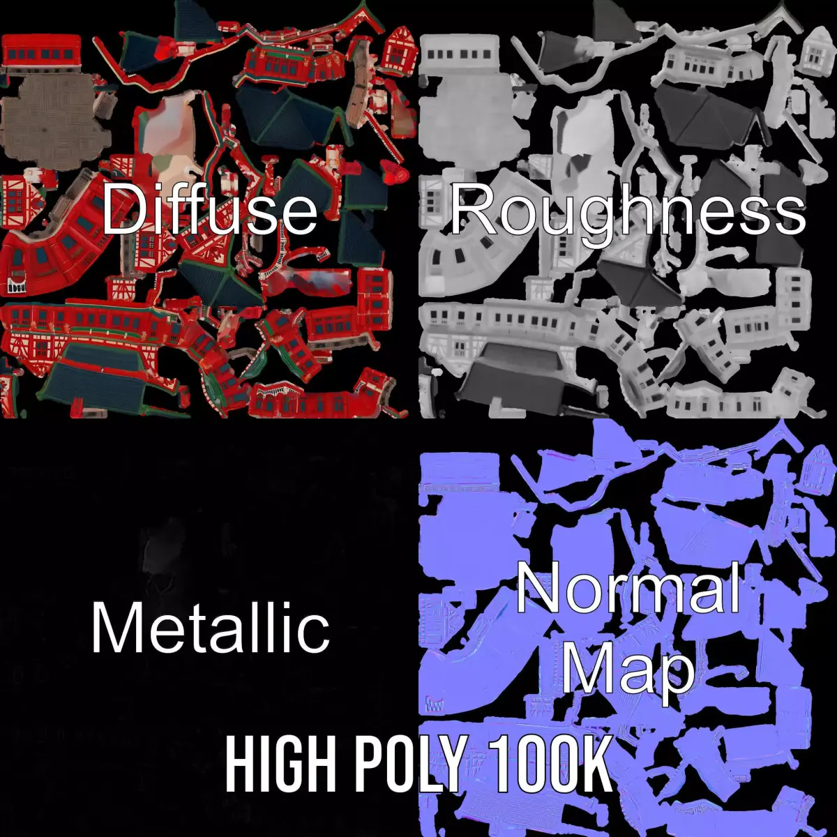 This Victorian Red House model pack showcases a beautifully detailed Victorian-style architecture with vibrant red hues and intricate woodwork. Each model has 3 levels of detail: low-poly(1000 triangles for mobile), middle-poly(10 000 triangles for environment), and high-poly(100 000 triangles), which allows for the use of this model in production rendering(such as 3ds Max, Maya, Cinema 4D, Blender, Vray/Corona/Cycles and all others), game engines (Unity and Unreal compatible), and interactive presentations, providing a choice of detail based on the LOD System principle. Ideal for use in historical video games, architectural visualizations, and creative storytelling. The model's textures are PBR, Diffuse, NormalMap, and reflection/roughness/metallic, suitable for any modern rendering engine. All models accurately unwrapped with no overlapping UVs. All textures are 4096*4096 in size. If you enjoyed this model pack, please like and leave a comment!