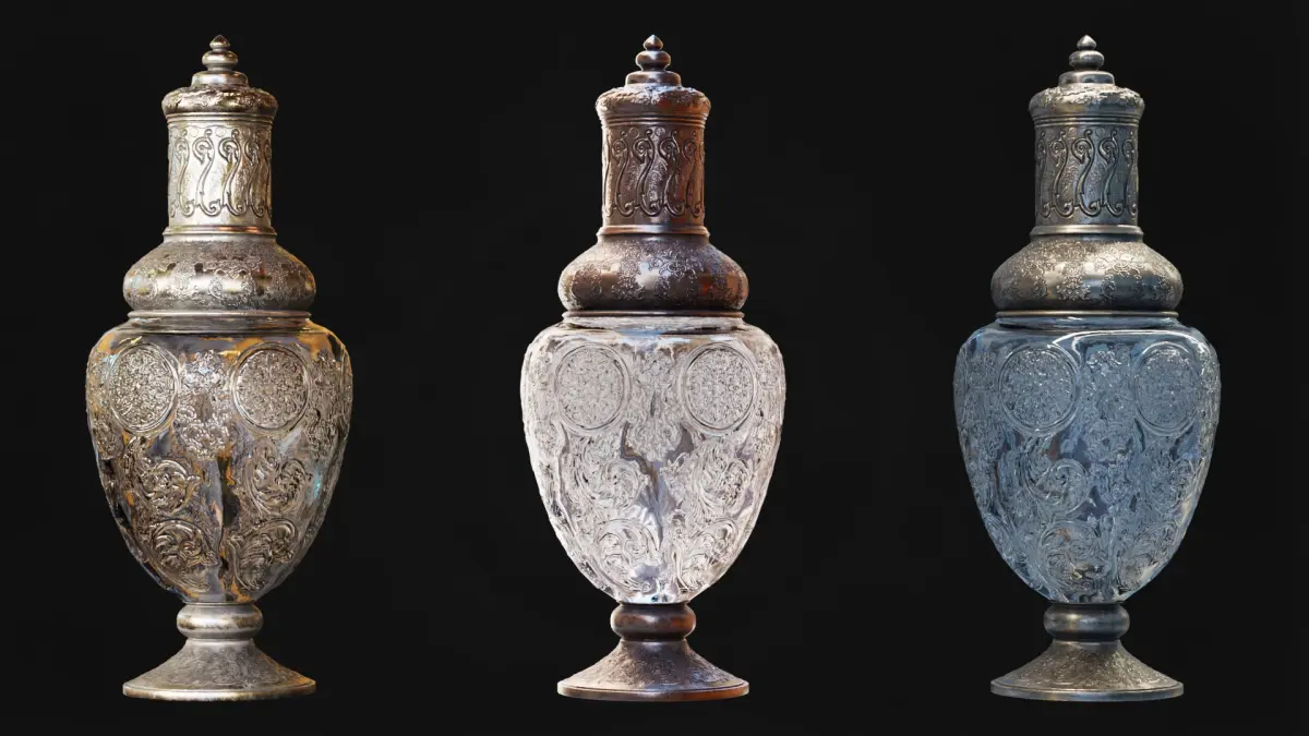 Victorian silver mounted Stourbridge glass ideal for video games,and environments and renders