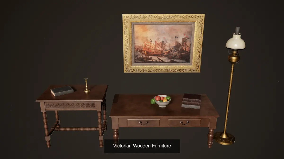 Model includes a Victorian-era sofa set, wooden furniture, coffee table, props, painting, and lamp.The model is low-poly and optimised for use in game, VR, archviz, and visual production.The model has clean topology, grouped and named appropriately, and unwrapped.Modelled in Blender. The Blender file includes high poly models.