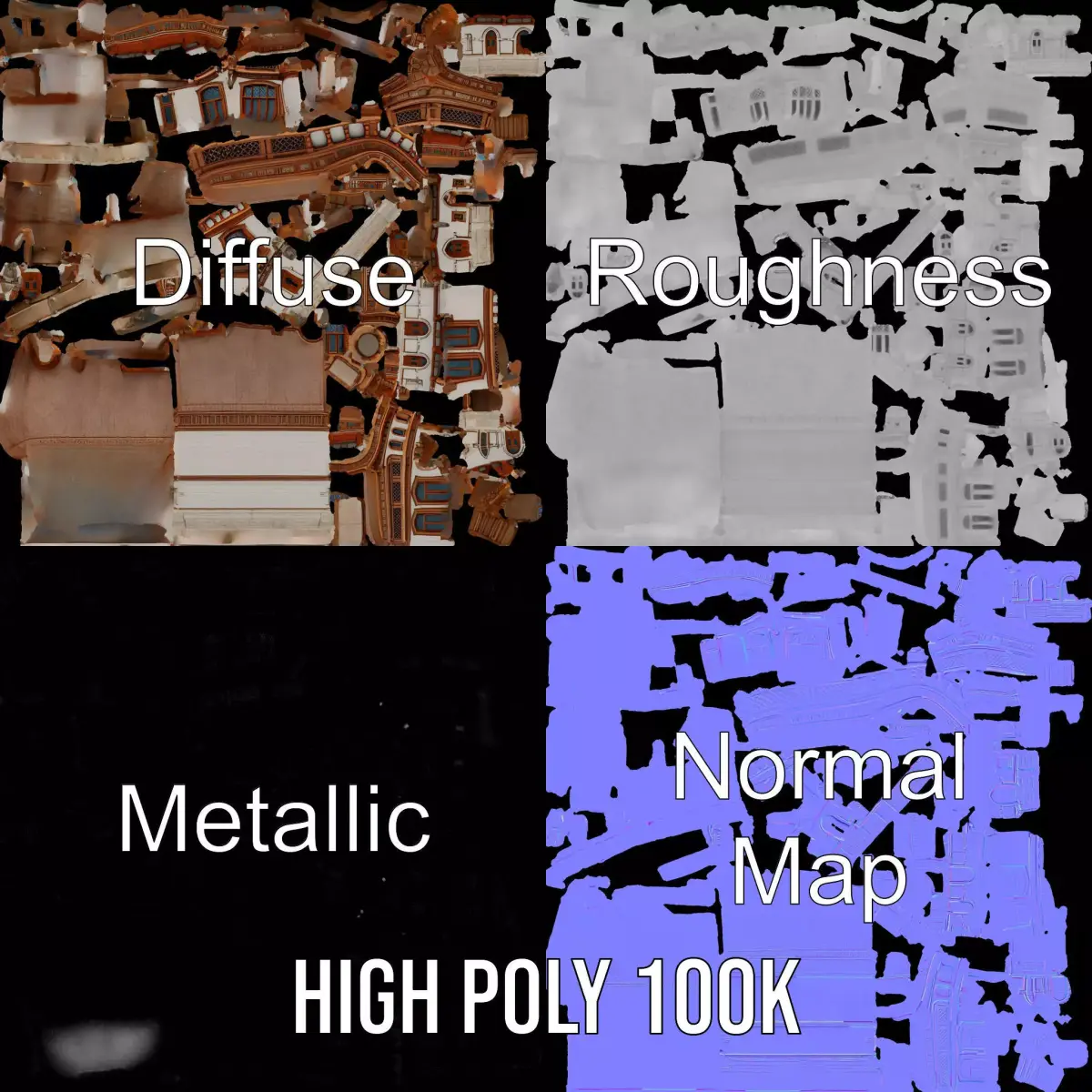 This Victorian Stone Mansion model pack beautifully captures the elegance and intricate details of a classic architectural style, ideal for historical scenes, films, and games. Each model has 3 levels of detail: low-poly (1000 triangles for mobile), middle-poly (10,000 triangles for environment), and high-poly (100,000 triangles), which allows for the use of this model in production rendering (such as 3ds Max, Maya, Cinema 4D, Blender, Vray/Corona/Cycles and all others), game engines (Unity and Unreal compatible), and interactive presentations, providing a choice of detail based on the LOD System principle. This model is perfect for recreating historical cityscapes or virtual tours. The model's textures are PBR, Diffuse, NormalMap, and reflection/roughness/metallic, which are suitable for any modern rendering engine. All models are accurately unwrapped and have no overlapping UV. All textures are 4096*4096 in size. Please like and leave a comment for the model if you enjoyed it.