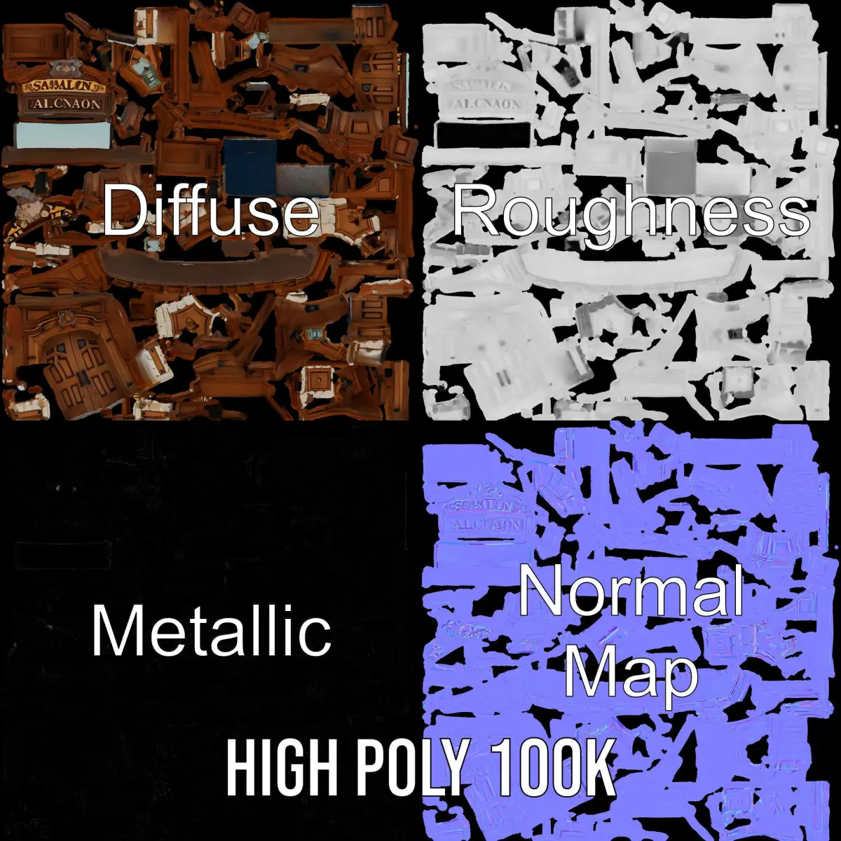 Textured with PBR, Diffuse, NormalMap, and reflection/roughness/metallic textures, these models are suitable for modern rendering engines, accurately unwrapped with no overlapping UVs. Textures are provided at a high resolution of 4096x4096 pixels, allowing for high-quality output. The models are compatible with popular game engines like Unity and Unreal.