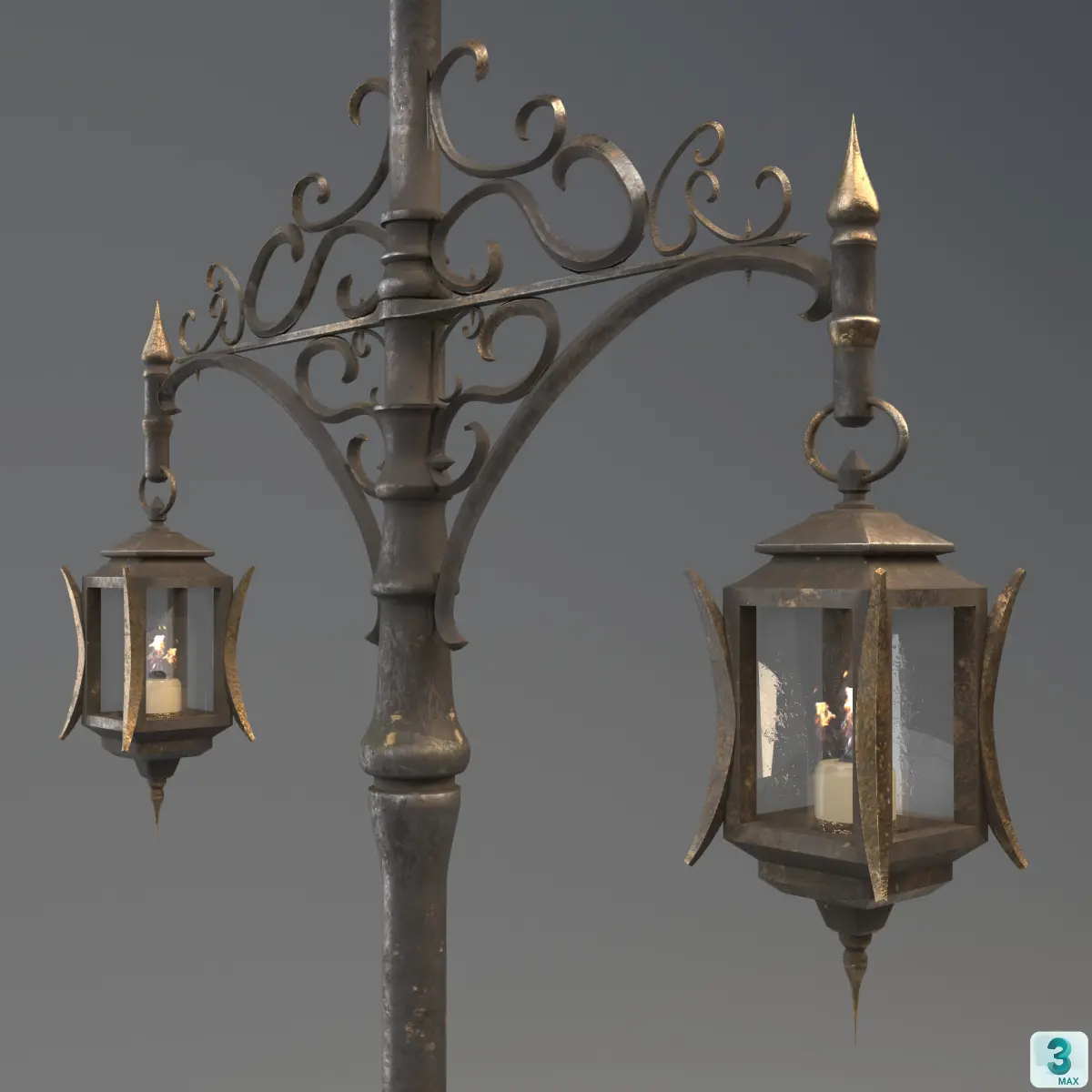 High quality, low poly Victorian-Bloodborne style digital Street Lamp model with its special textures.