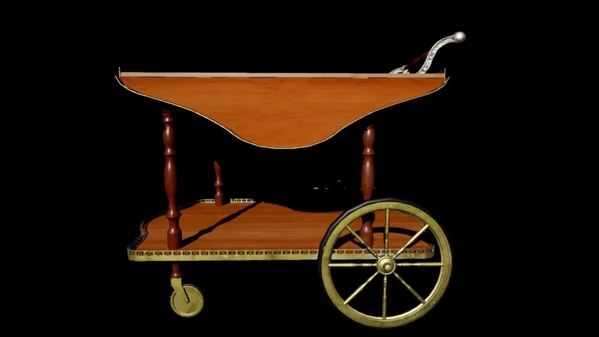a luxurious winecart from the victorian era with 3d sculpted handles. made for PBR pipeline.