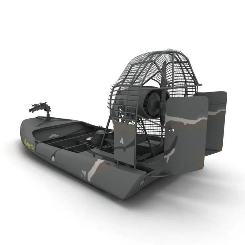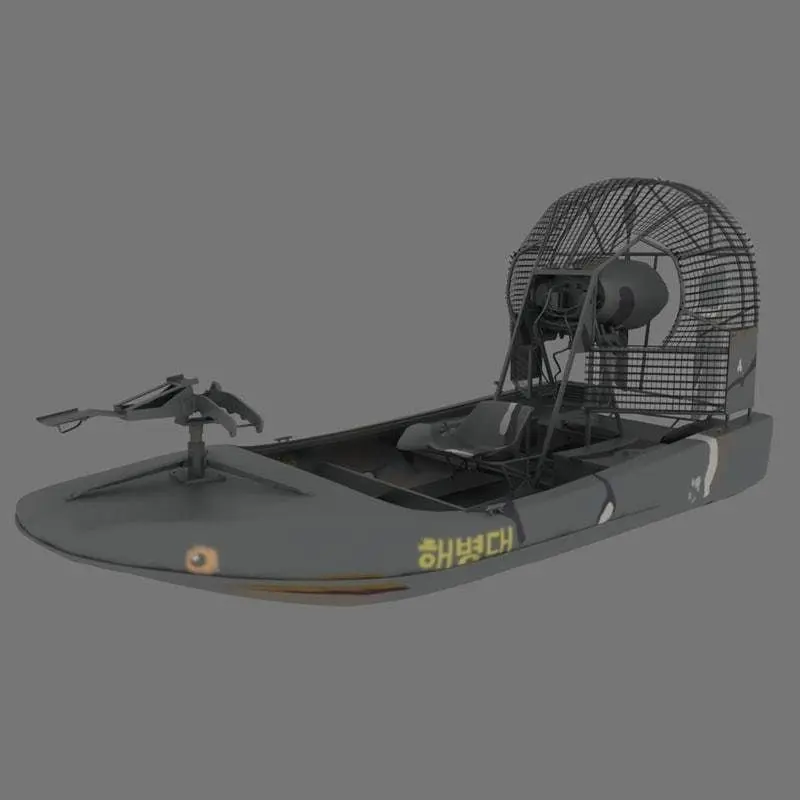 A rare vessel left from VIETNAM WAR. This is a full-scaled model of the same.An airboat also known as a fan boat is a flat-bottomed vessel (jon boat) propelled in a forward direction by an aircraft-type propeller and powered by either an aircraft or automotive engine. Airboats are a very popular means of transportation in the Florida Everglades, parts of the Indian River Lagoon, the Kissimmee and St. Johns Rivers, as well as Louisiana Bayous, where they are used for fishing, bowfishing, hunting and eco-tourism, and in other marshy and/or shallow areas where a standard inboard or outboard engine with a submerged propeller would be impractical.