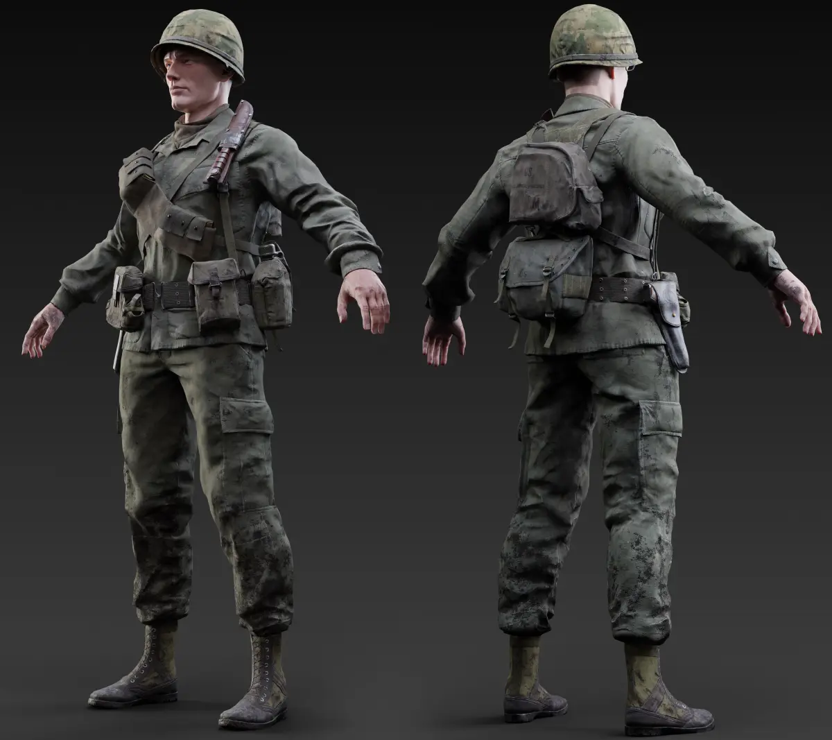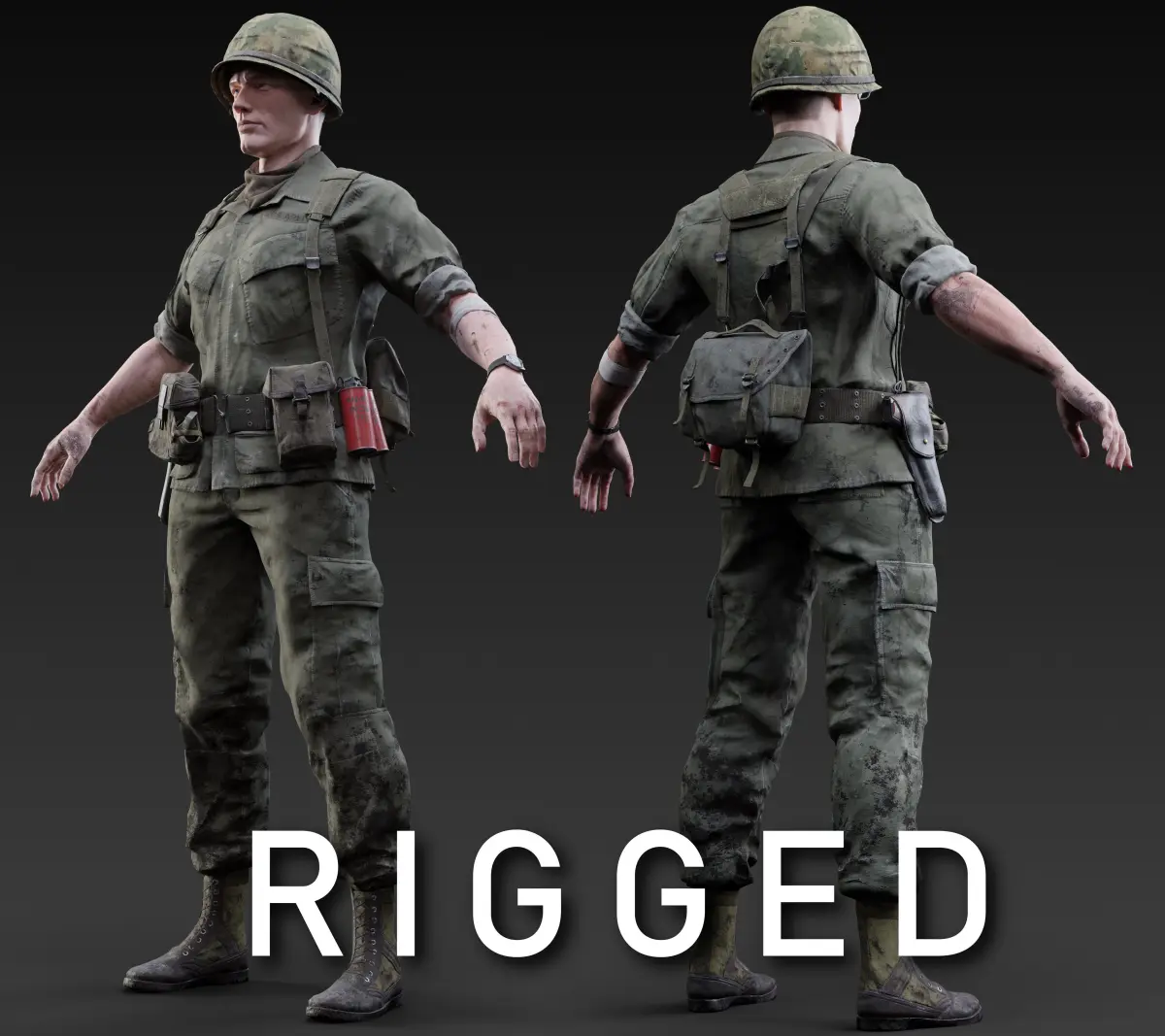 High Fidelity 3D Game-ready U.S. Army G.I. from the Vietnam War Era (Late 60s-Early 70s) [RIGGED]