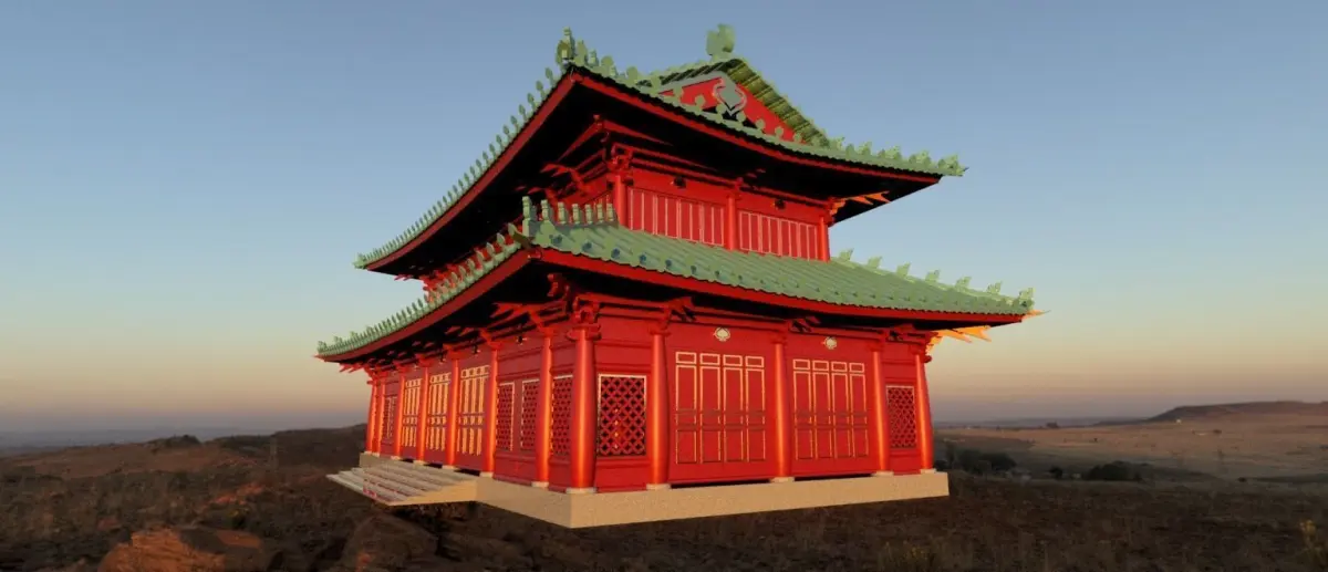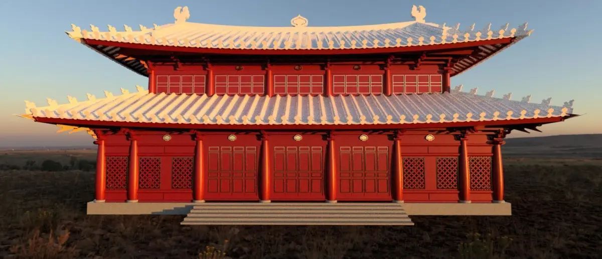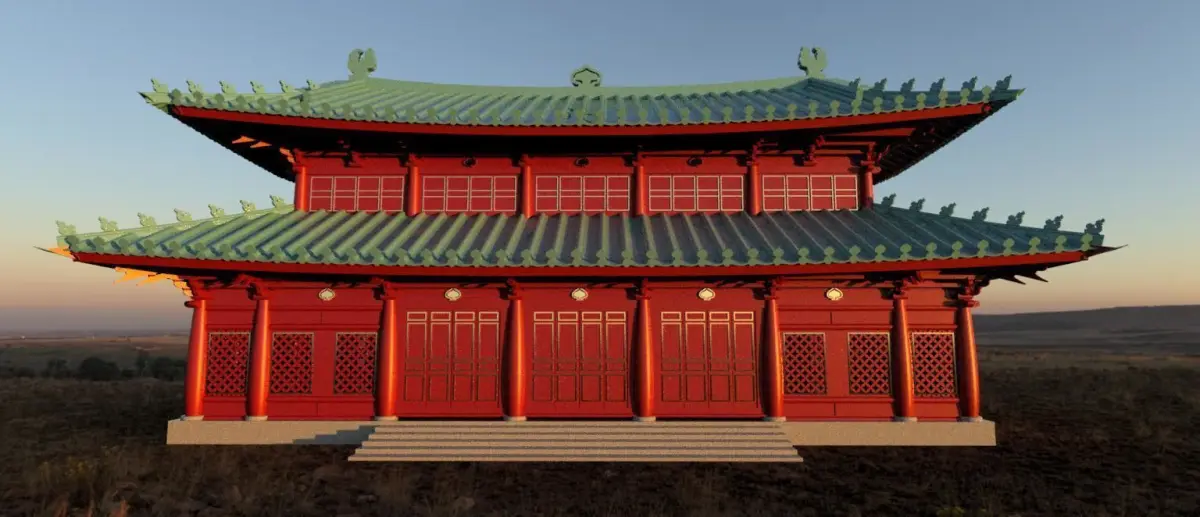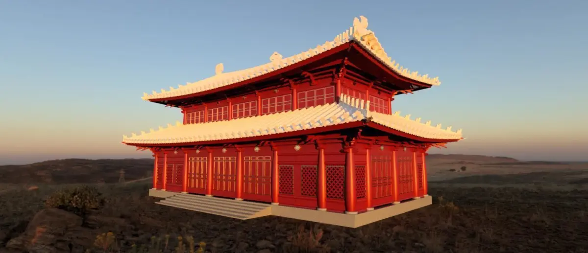 Vietnamese 13th century imperial hall of the Lý and Trần dynasties (who vanquished 3 Mongols invasions under Kublai Khan). It contains all architectural elements true to the typical Vietnam and Oriental style. The pillars are lacquered red while the tiles are white glazed. An imperial hall is a place for gathering and debating important matters of the dynasty.