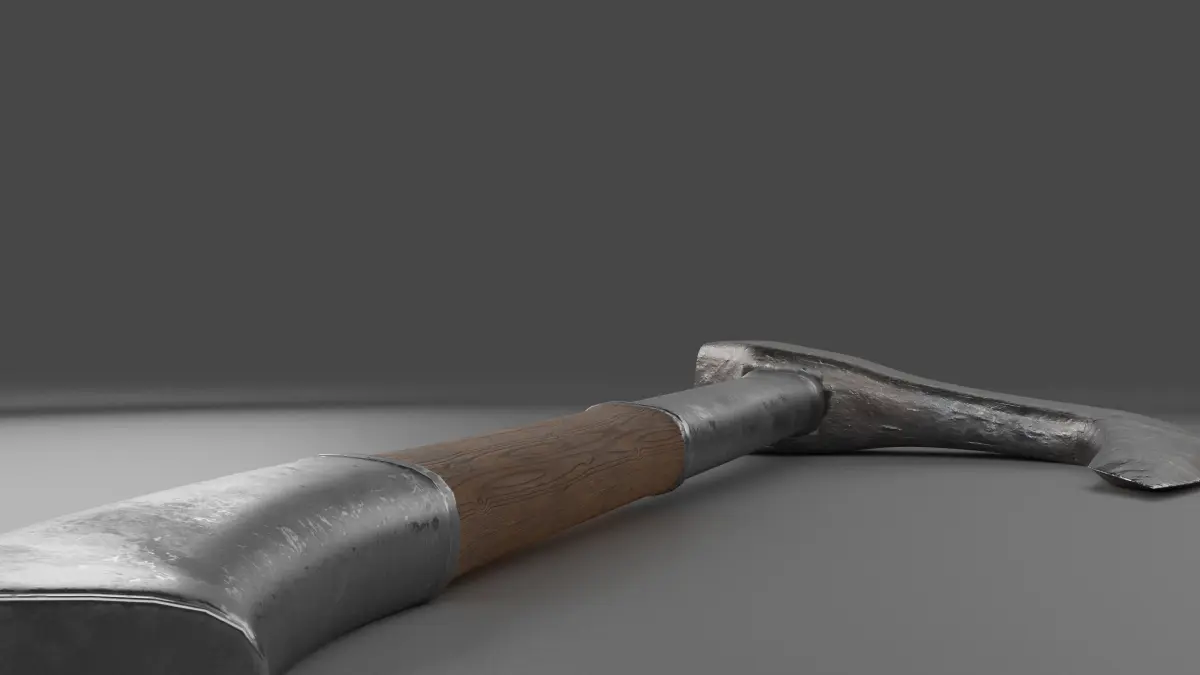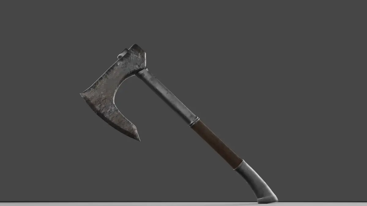 An axe head was mostly wrought iron, with a steel cutting edge. This made the weapon less expensive than a sword, and was a standard item produced by blacksmiths, historically.
