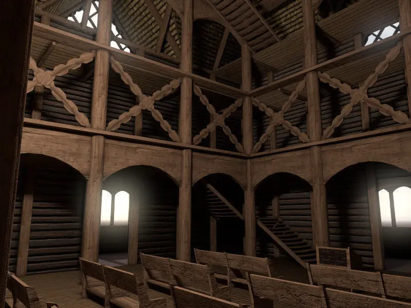This pack contains 1 church, 3 houses (all including detailed interiors) and 12 decoration models likefurniture, benches or a shrine.