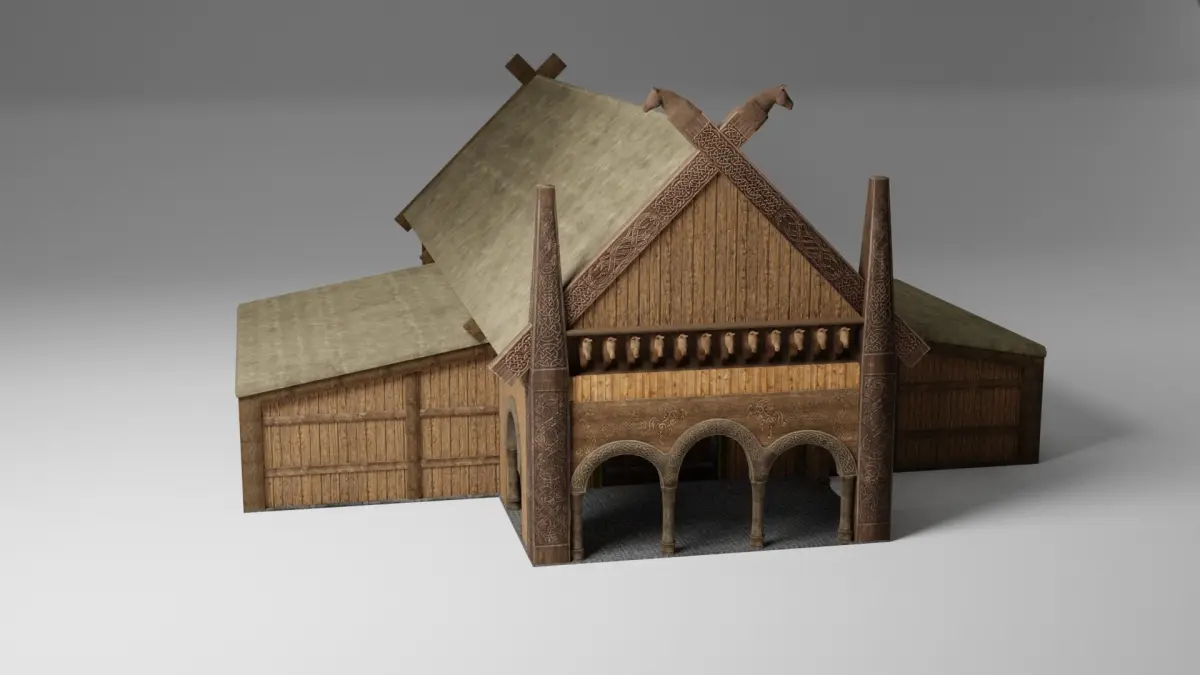 Small Viking Great Hall. Setup is pretty simple, quick instructions are in .zip file anyway. Contents:Great hall - 16 x 4K png image (4x diffuse, 4x roughness, 8x normal maps - 4 standard + 4 with inverted green channel (openGL, directx use)Throne, Door1, Door2 - 9x 2K png image (3x diffuse, 3x normal map, 3x combined Roughness/Metallic/OC map)