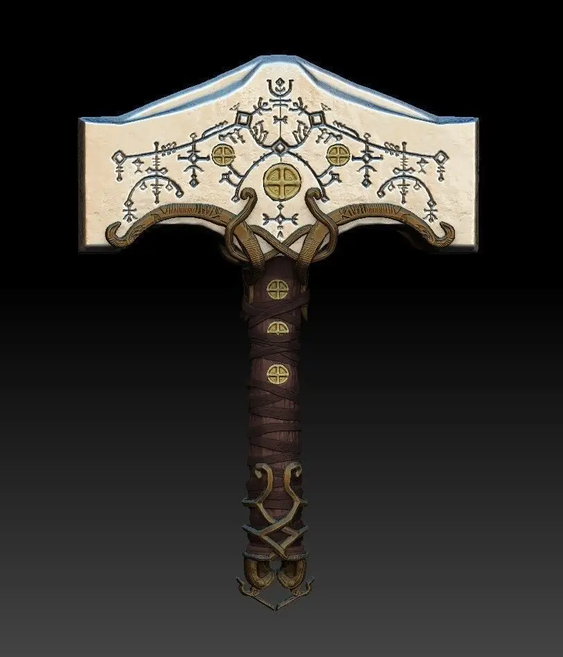 Fan made model of Mjolnir from God of War Ragnarok based on concept art pre release.