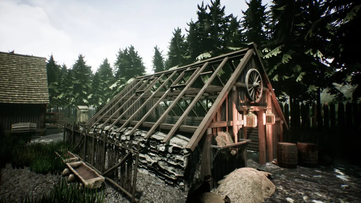 Viking HouseHold complete scene with a main Viking House and 50 additional props such as household tools, furniture, barrels, barns, stables, boxes, hay wagons and others. Including an additional small wooden house with interiors and decorative elements. All models are presented in the images and presentational video!