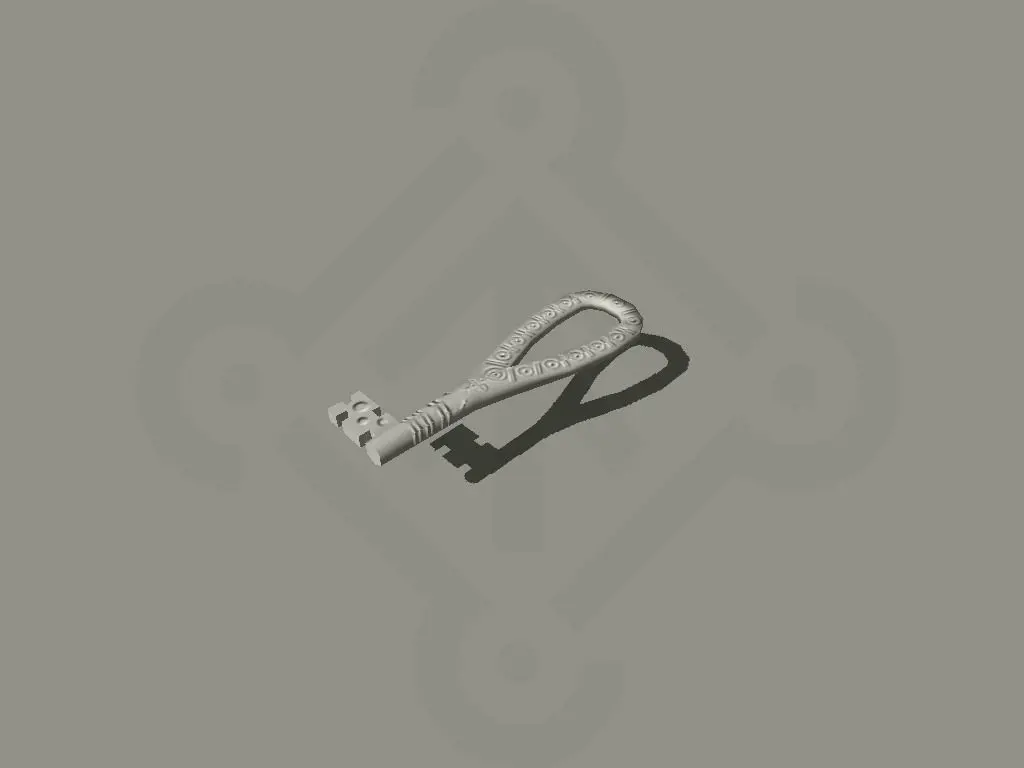 This is a interpretation of a typical viking key, maybe for a house , or for a chest holding valuables. Similar keys have been found in different places around scandinavia and the british isles, dating from the early middle ages. The Key is made from bronze, with silver inlays.