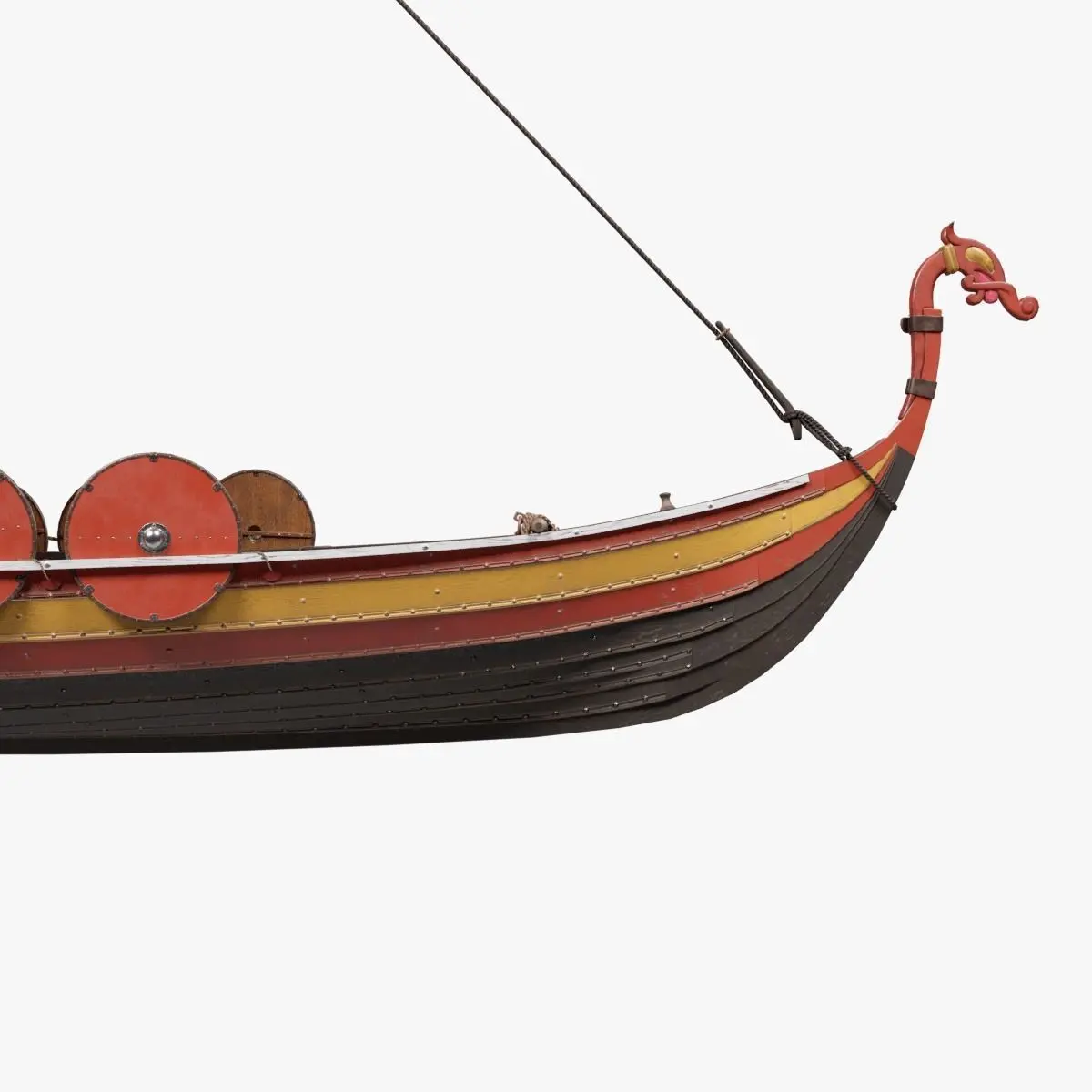 This ship is modeled on one of the five late Viking period (11th-Century) ships found near the town of Skuldelev, Denmark, during the 1960's. Ship number 5 was roughly 65% intact and archaeologists determined it was a warship constructed around 1030CE, capable of transporting about 30 warriors. Based on its dimensions, it was probably not capable of deep sea voyages, and would have been most likely have been used for raiding or patrolling along coastlines or within the Baltic Sea.